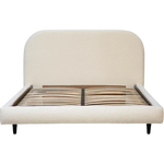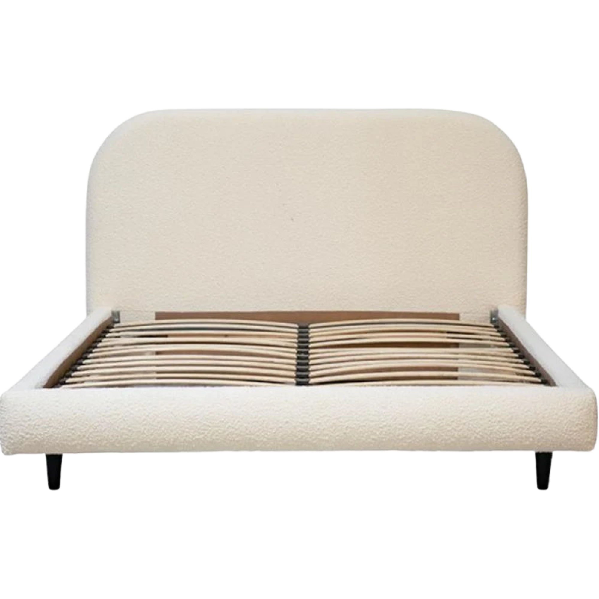 We love the rounded edges of this Marlene Bed. The off white boucle brings a textured, warm look to any bedroom.