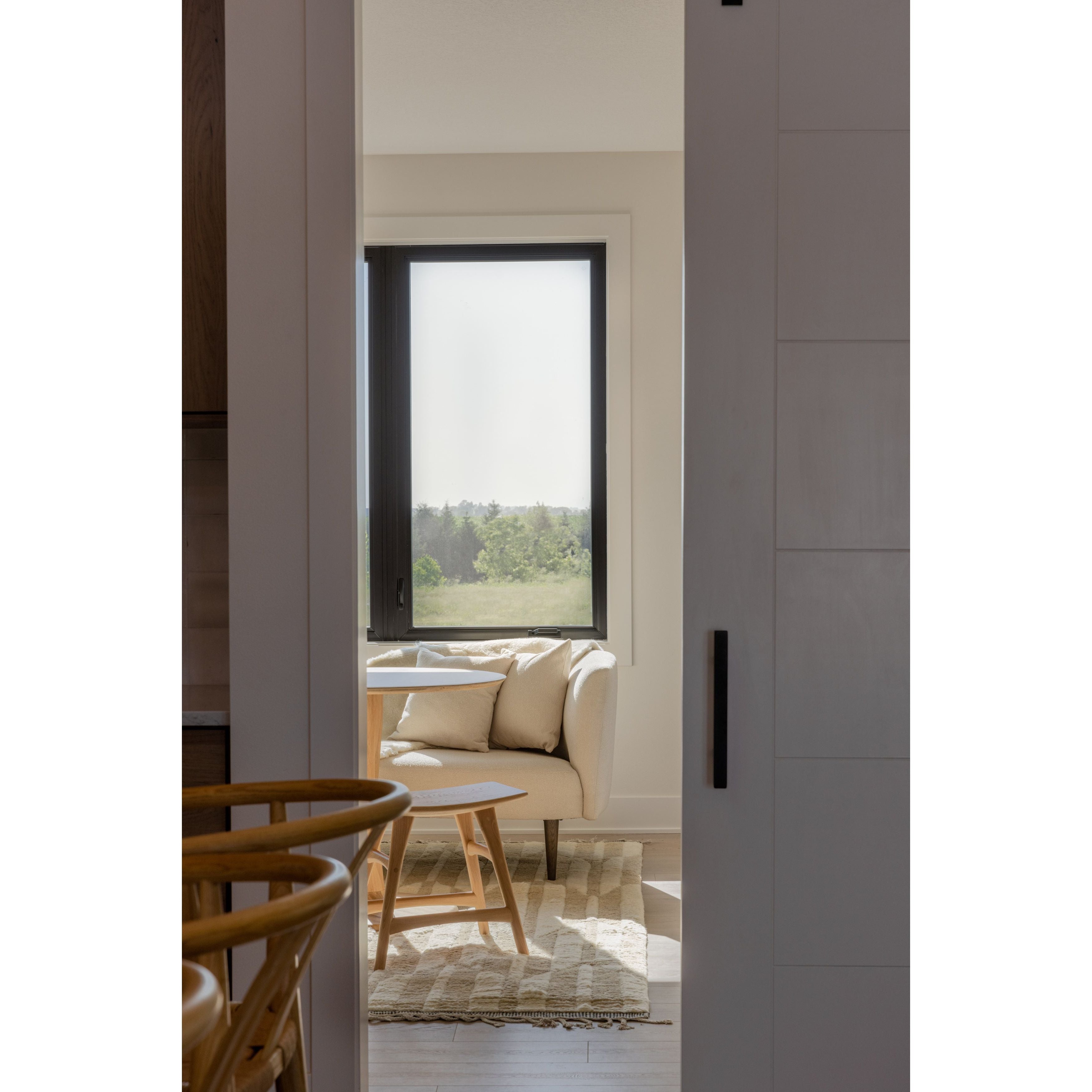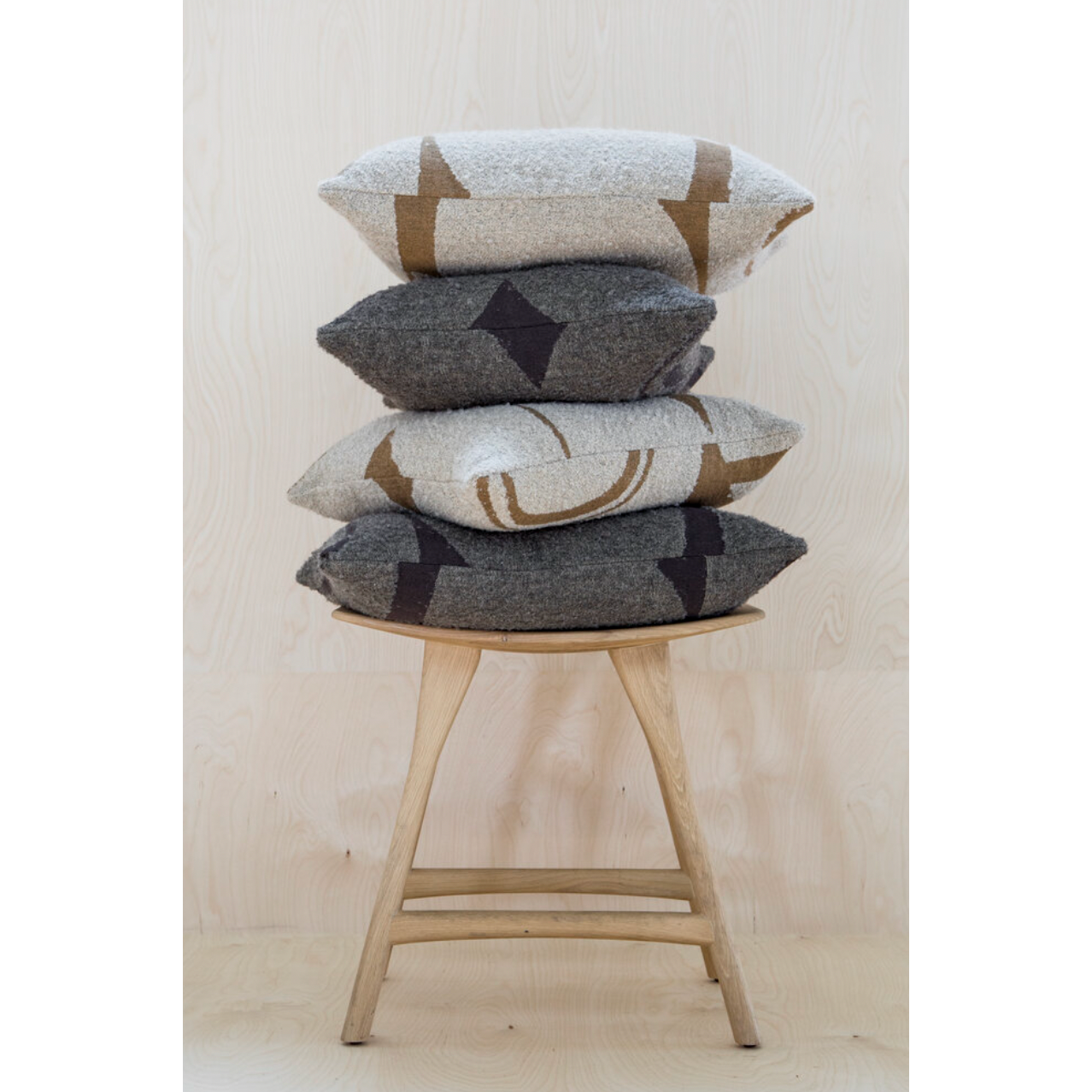 Geometric Oak Round Table, Osso stool and Bok chair