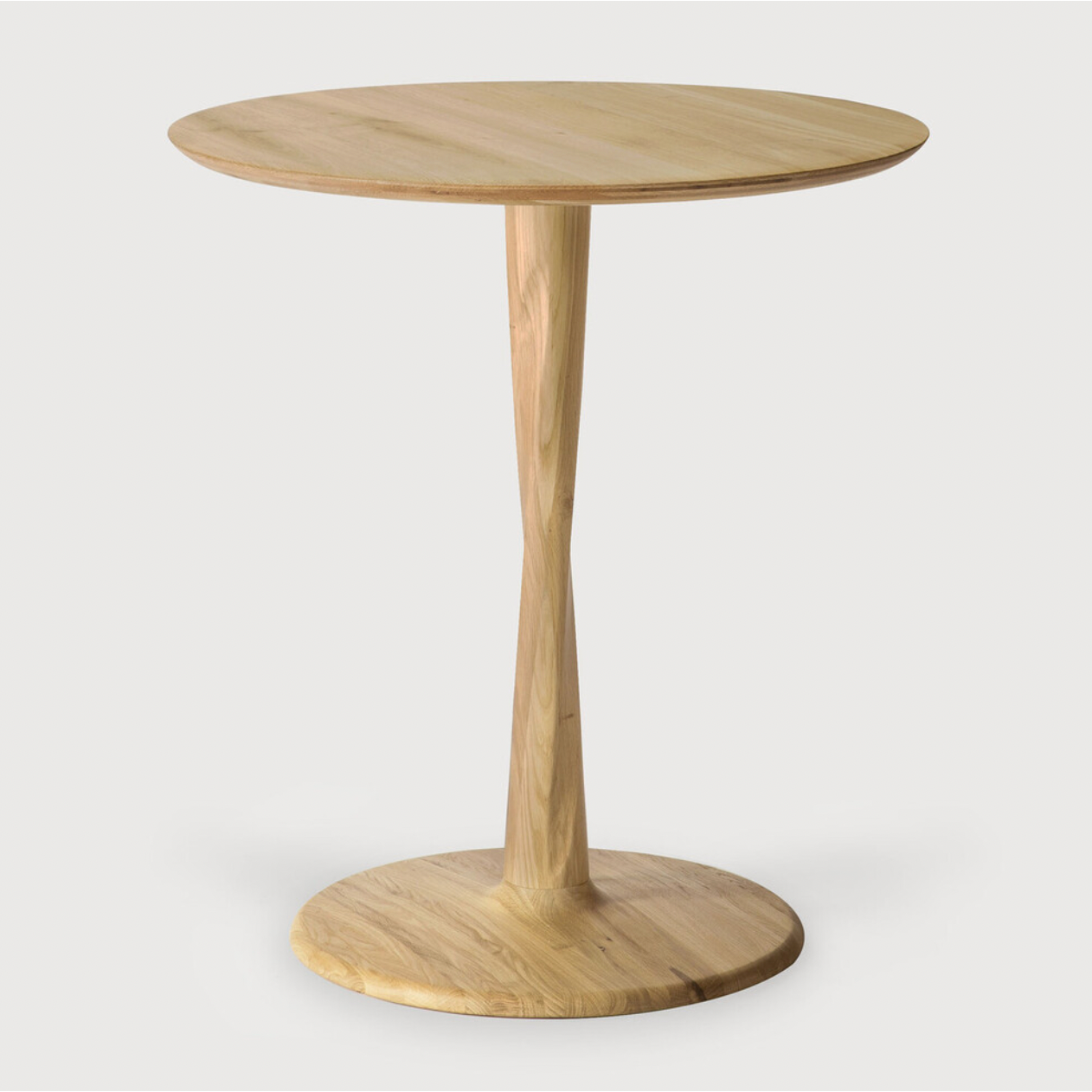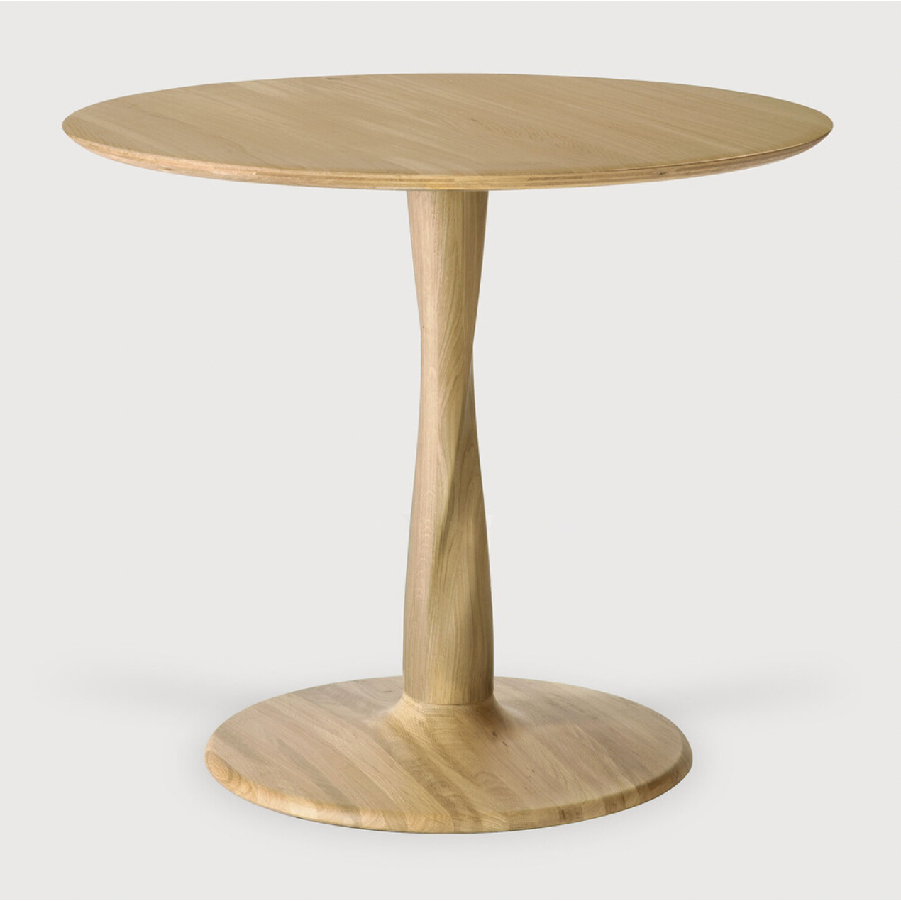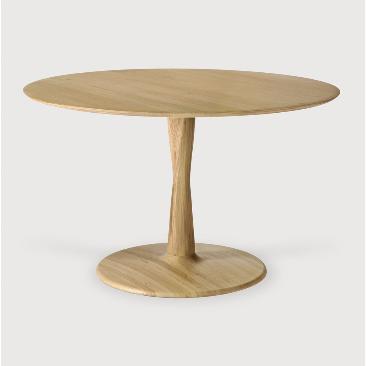 Featuring Oak Round Torsion Dining Table by Ethnicraft at Amethyst Home. Airy with subtle complexities, this Oak Round Torsion Dining Table incorporates advanced woodworking techniques to create a light table top with a torsaded base of sculptural elegance -- sure to elevate the look for any dining or kitchen area.