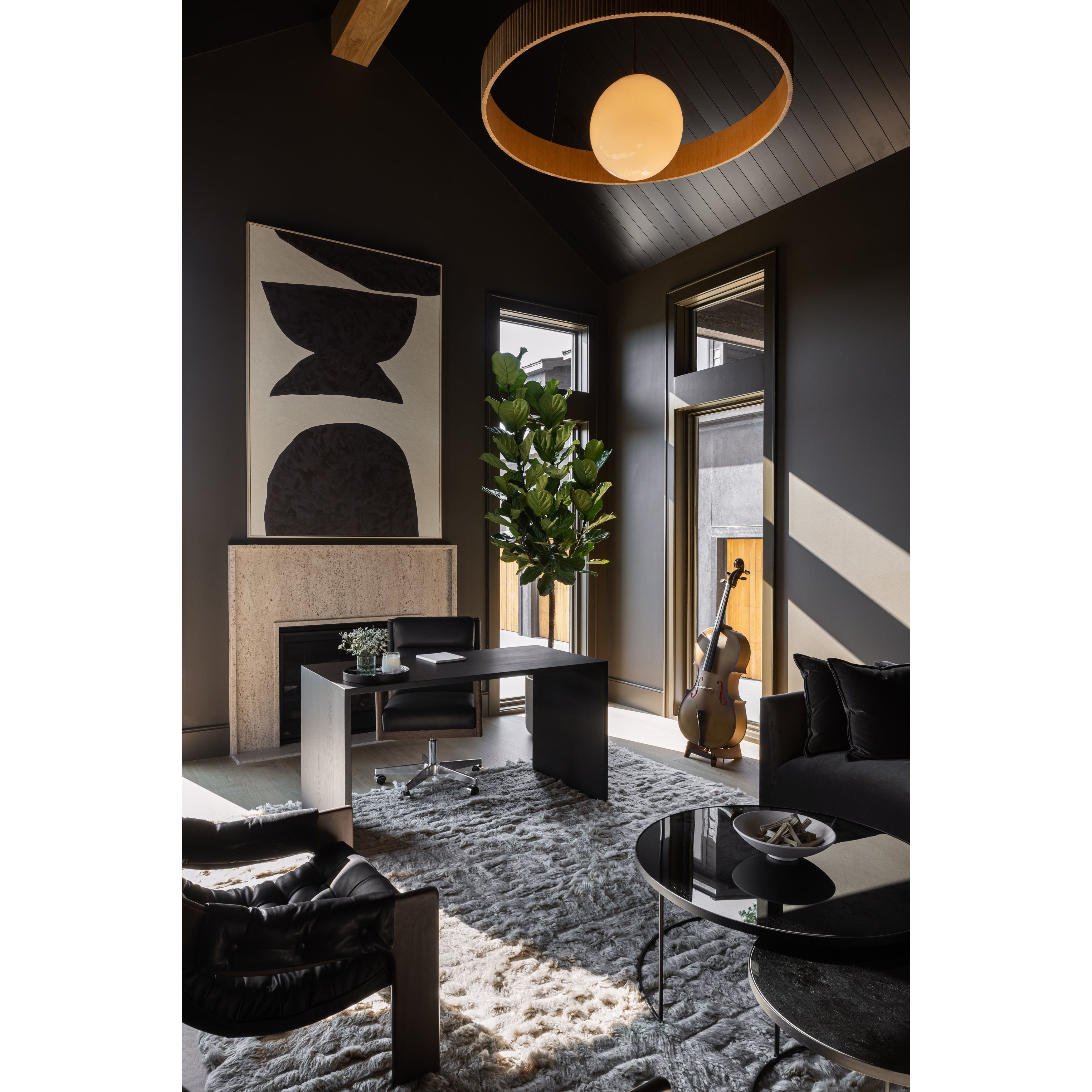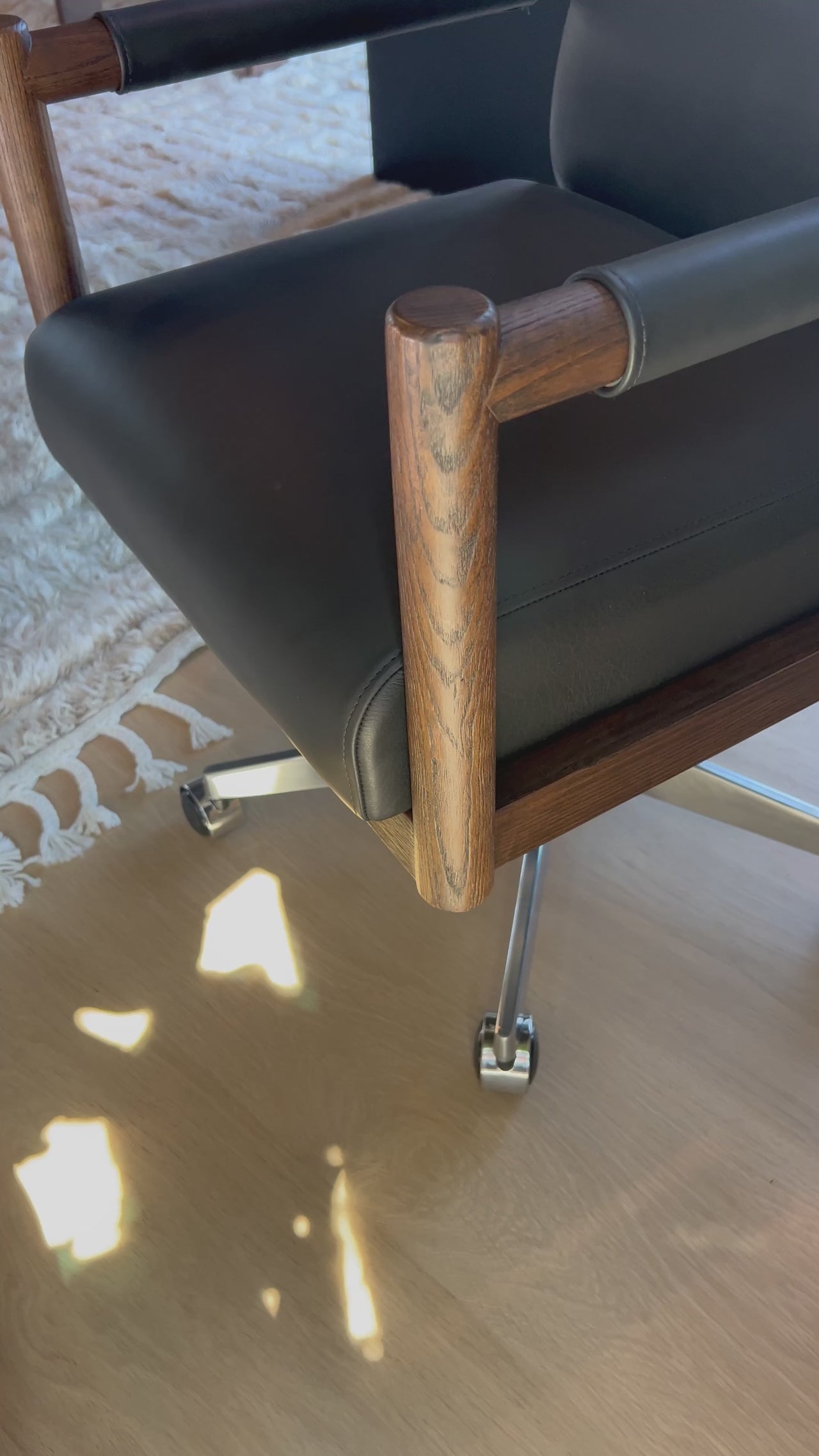 An Amethyst fave -- the Levi Black Leather Desk Chair is modern yet inviting.  Gorgeous black leather with a sleek side profile, this desk chair will elevate your office.