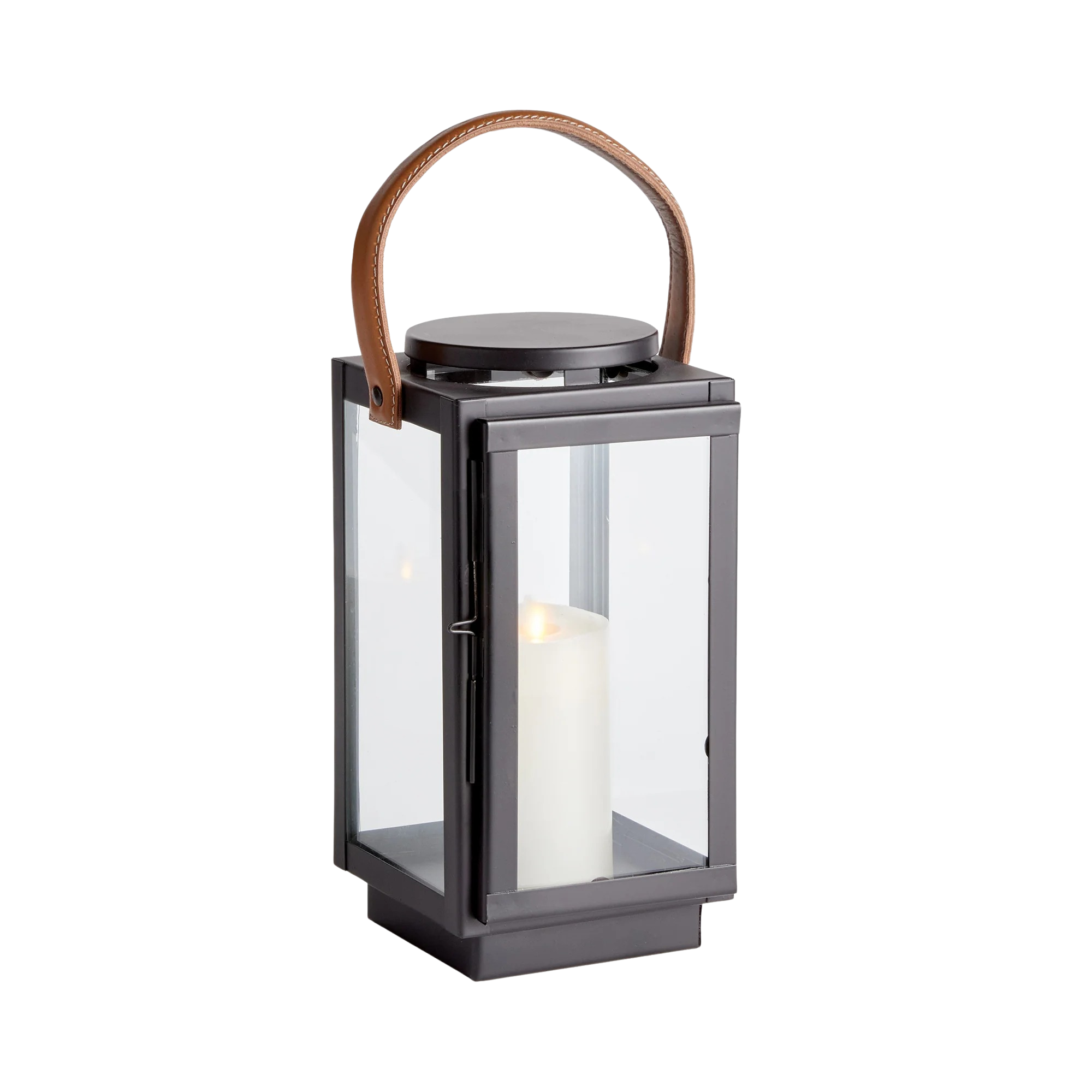 Featuring a real leather handle with tailored stitching, this well-scaled lantern is a mix of traditional and modern aesthetics. A beautiful accent for entryway, living room or study.