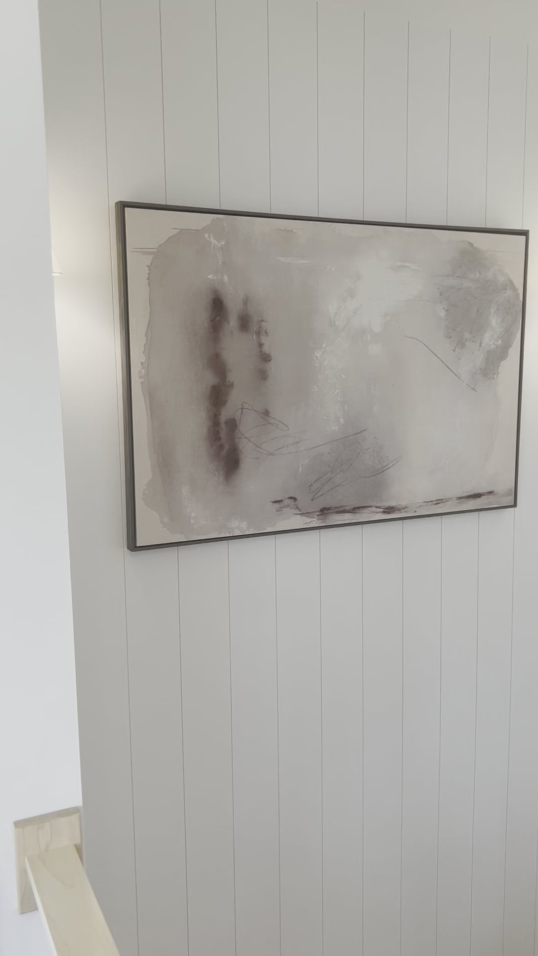 The perfect balance of cream and grey, this Just I art is a beautifully soft yet modern piece to elevate your entryway, living room, dining room or other area!