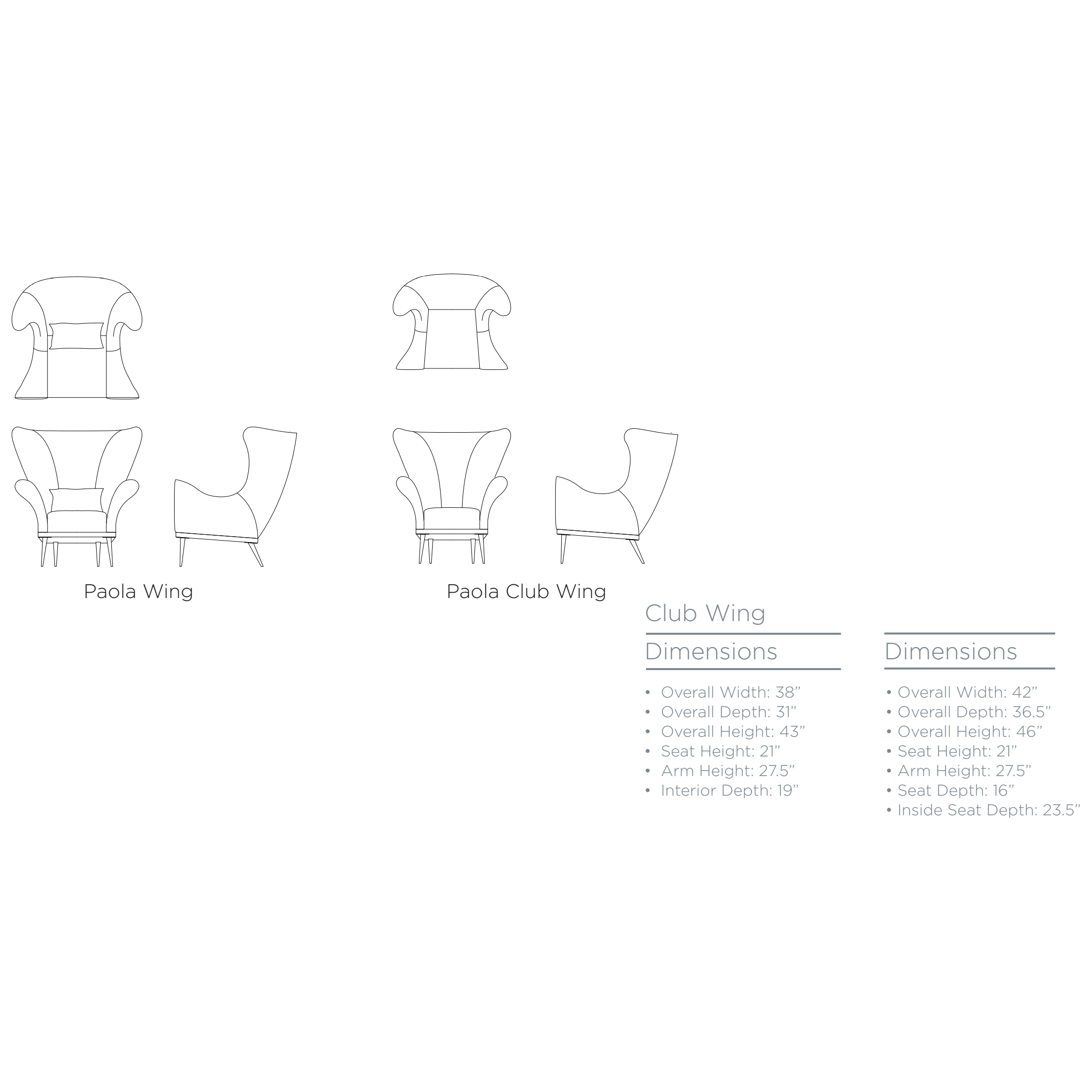 About The Paola Wing Chair & Dimensions