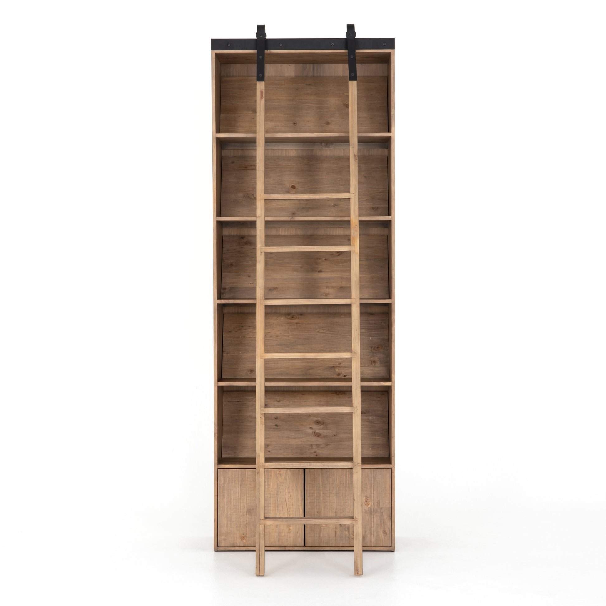 Featuring Bane Bookshelf by Four Hands at Amethyst Home. Five roomy shelves are ready to store favorite books and treasures, with smoked solid pine suited for any space. Removable ledges slant at an angle on each shelf, for even-better display of art and coffee table-size books, plus an optional slide ladder (for decorative use only) to complete the look..  Amethyst Home provides interior design, new home construction design consulting, vintage area rugs, and lighting in the Scottsdale metro area.