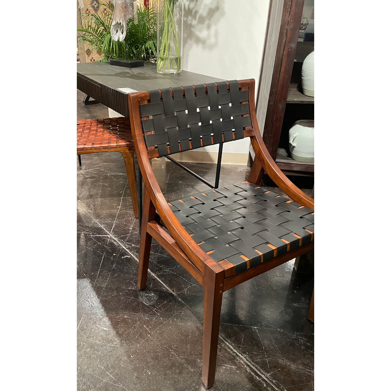 Teak Frame with Full Grain Leather Weaving