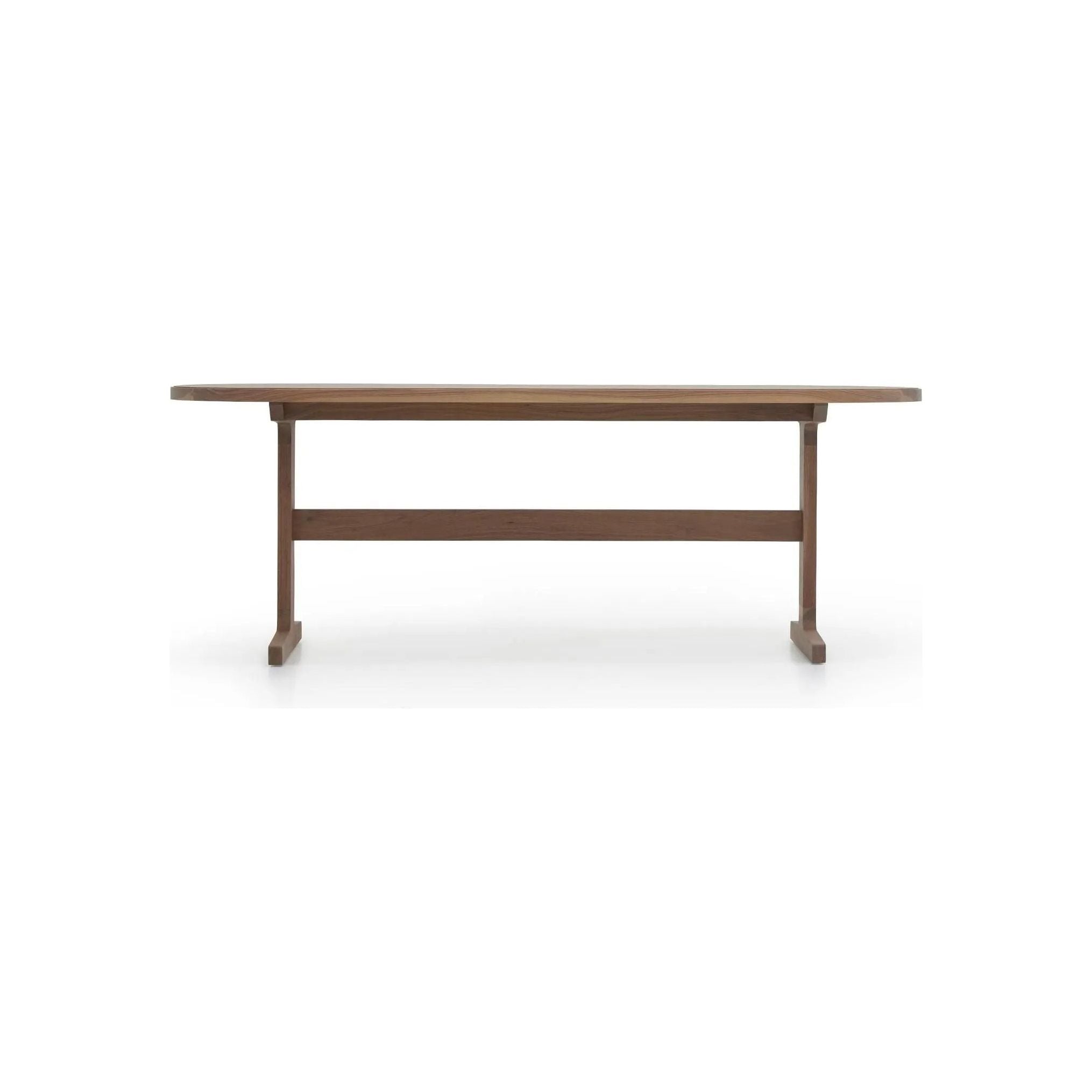 A Verellen classic: the I Beam Dining Table is our take on a classic trestle table. It's handmade from sustainably harvested hardwood featuring an oval table top with unique step detail and trestle style legs. Available in Ash or Walnut. Amethyst Home provides interior design, new home construction design consulting, vintage area rugs, and lighting in the Washington metro area.