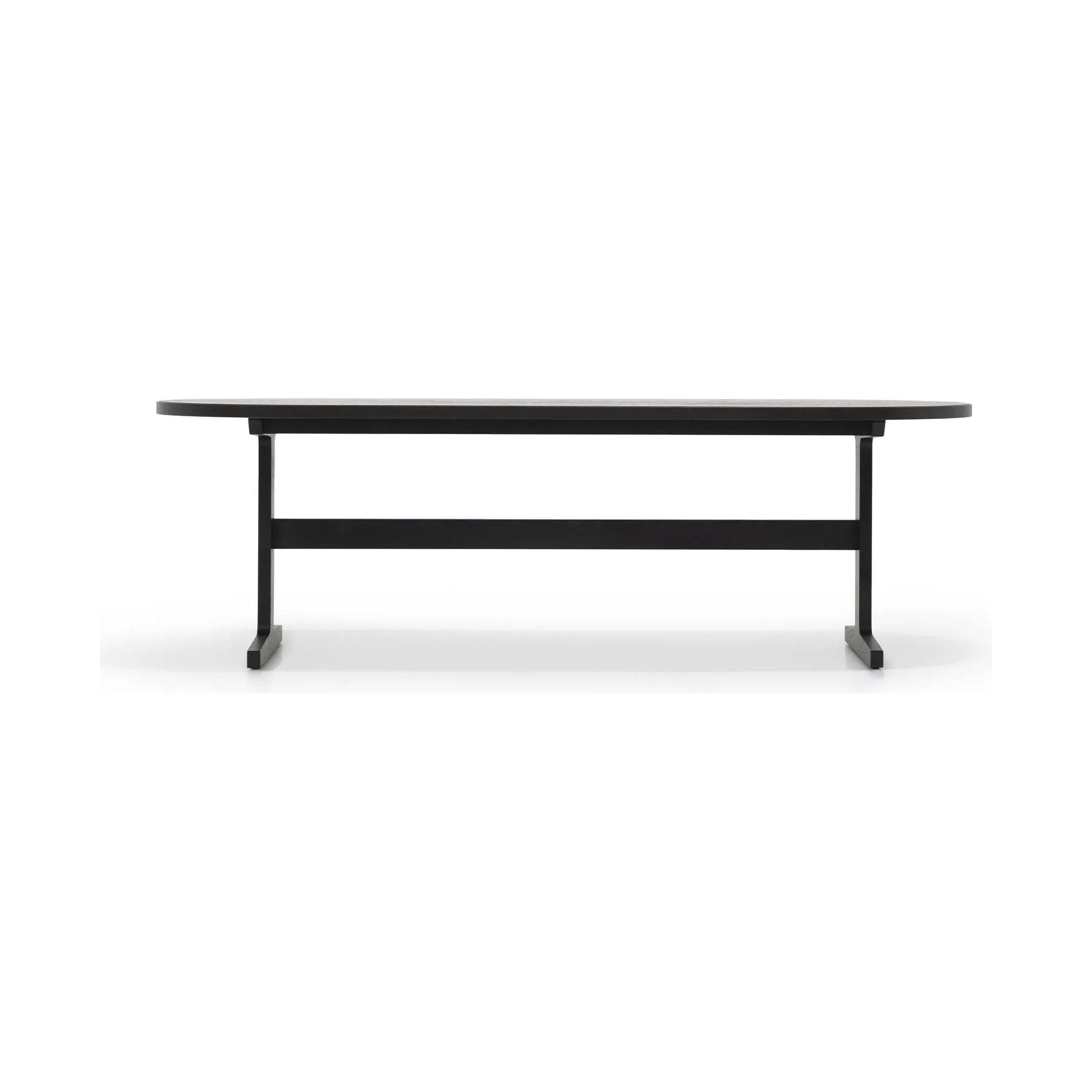 A Verellen classic: the I Beam Dining Table is our take on a classic trestle table. It's handmade from sustainably harvested hardwood featuring an oval table top with unique step detail and trestle style legs.