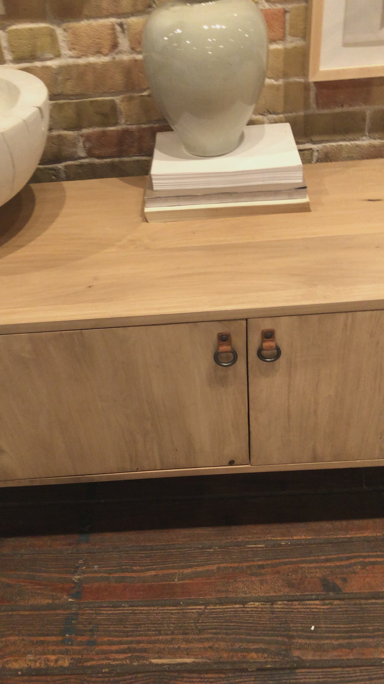 This Isador Media Console - Dry Wash Poplar is clean, bright and dreamy. Solid dry-washed poplar forms a clean-lined media console with dovetail joinery plus iron and leather hardware, for a fresh look to any living room.