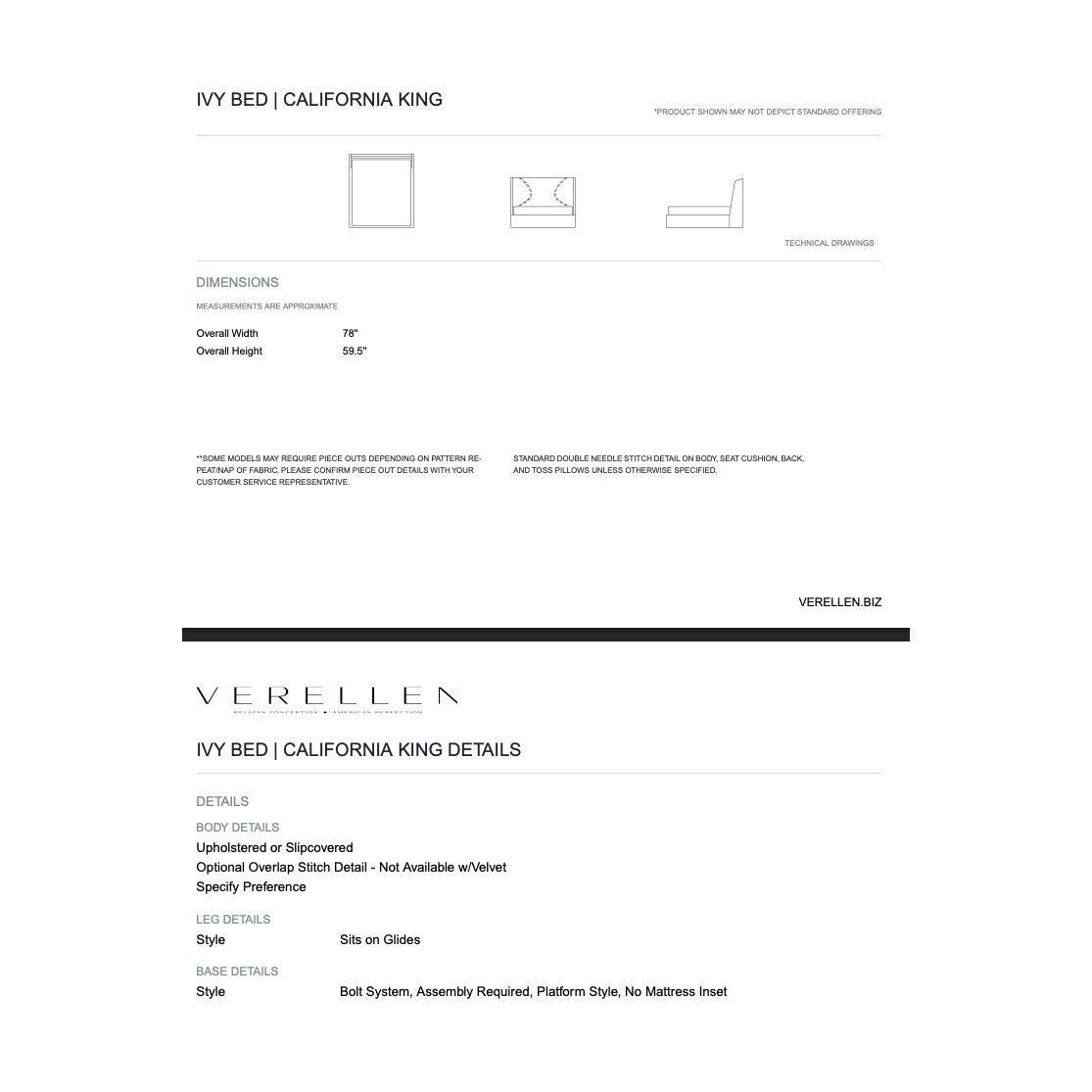 About The Ivy Cal King Bed By Verellen & Dimensions