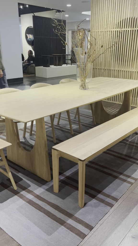 Featuring Oak Geometric Dining Table by Ethnicraft at Amethyst Home. With enriched shapes and unexpected details, this Oak Geometric Dining Table is a statement item. Luxury comes with its length, which is offset by softened edges and natural lines -- perfect for any dining room or workspace.