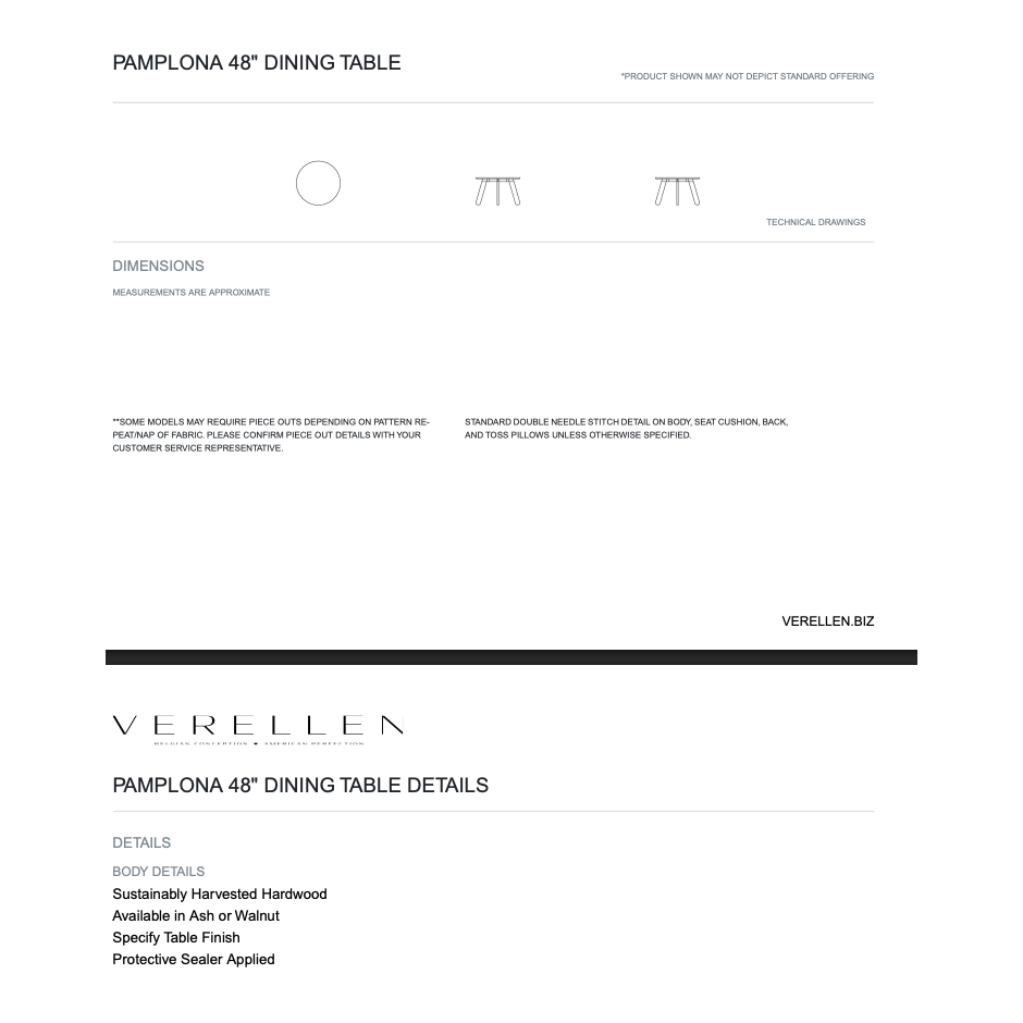 Pamplona 48" Round Dining Table By Verellen