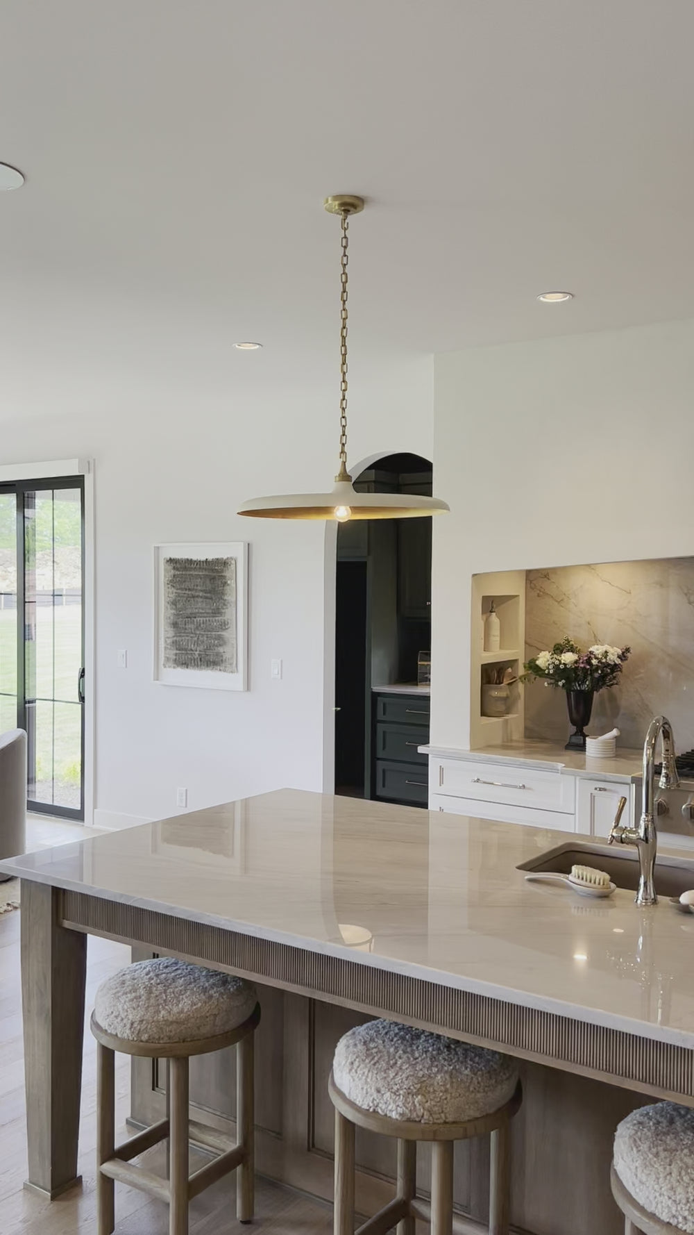 • Featuring Piatto Large Pendant by Visual Comfort at Amethyst Home. The Piatto Large Pendant is one of our favorite lighting pieces for a kitchen island. Finished in a Hand-Rubbed Antique Brass with Plaster White Shade is an elegant take on a timeless pendant light.