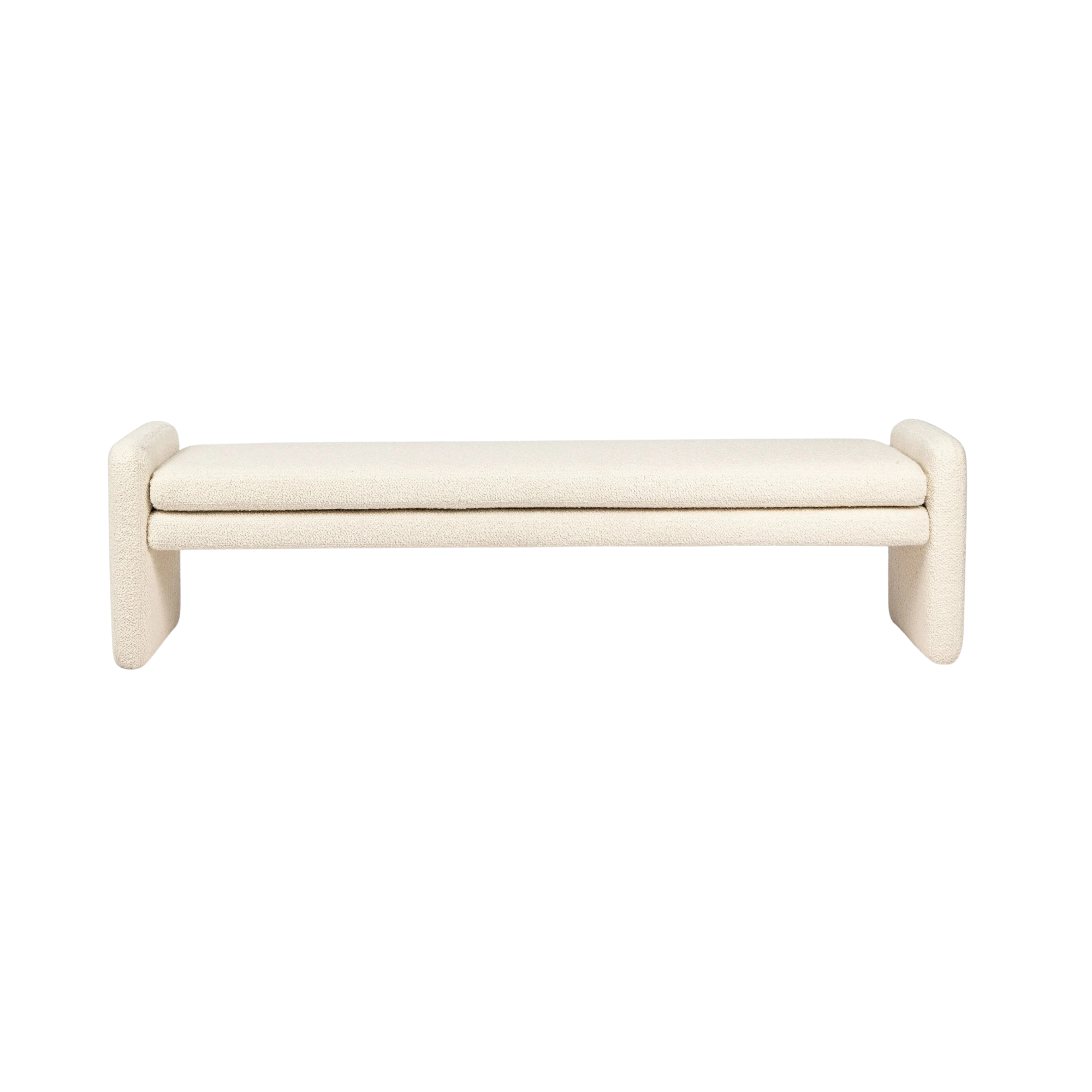 Featuring Serena Durham Cream Accent Bench by Four Hands at Amethyst Home. Cream, boucle-like upholstery covers a long, sophisticated dining bench.Overall Dimensions: 18"W x 70"Lx 19"H