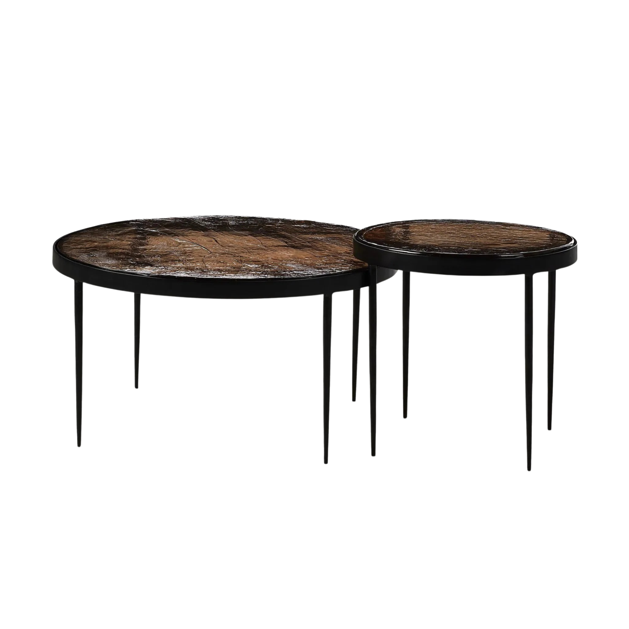 Yoko Smoked Brown Cast Glass Nesting Table | shipping 02/10/2026