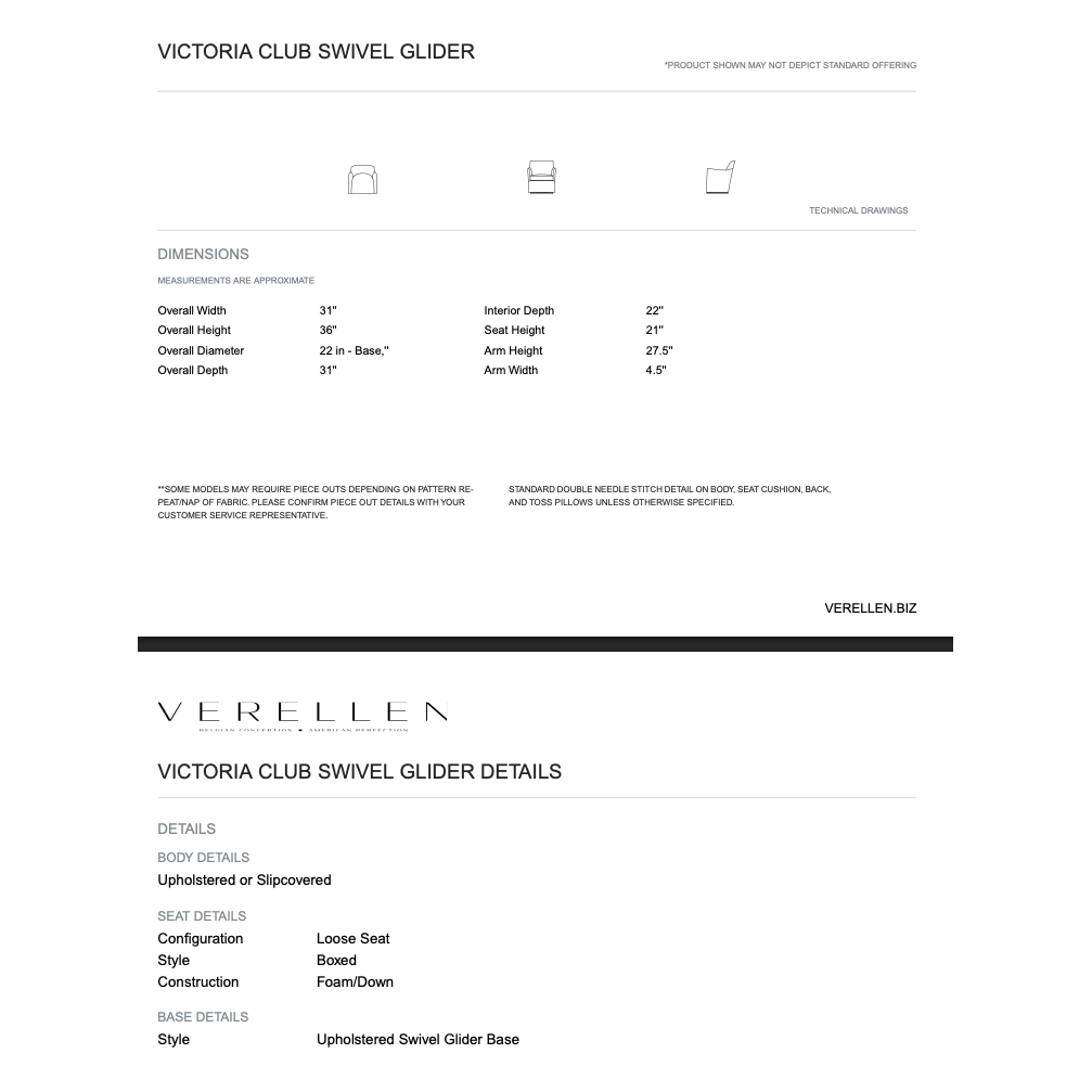 ꕤ About The Victoria Glider Swivel Club Chair By Verellen in Desert Linen Natural | shipping 2/12/2026
