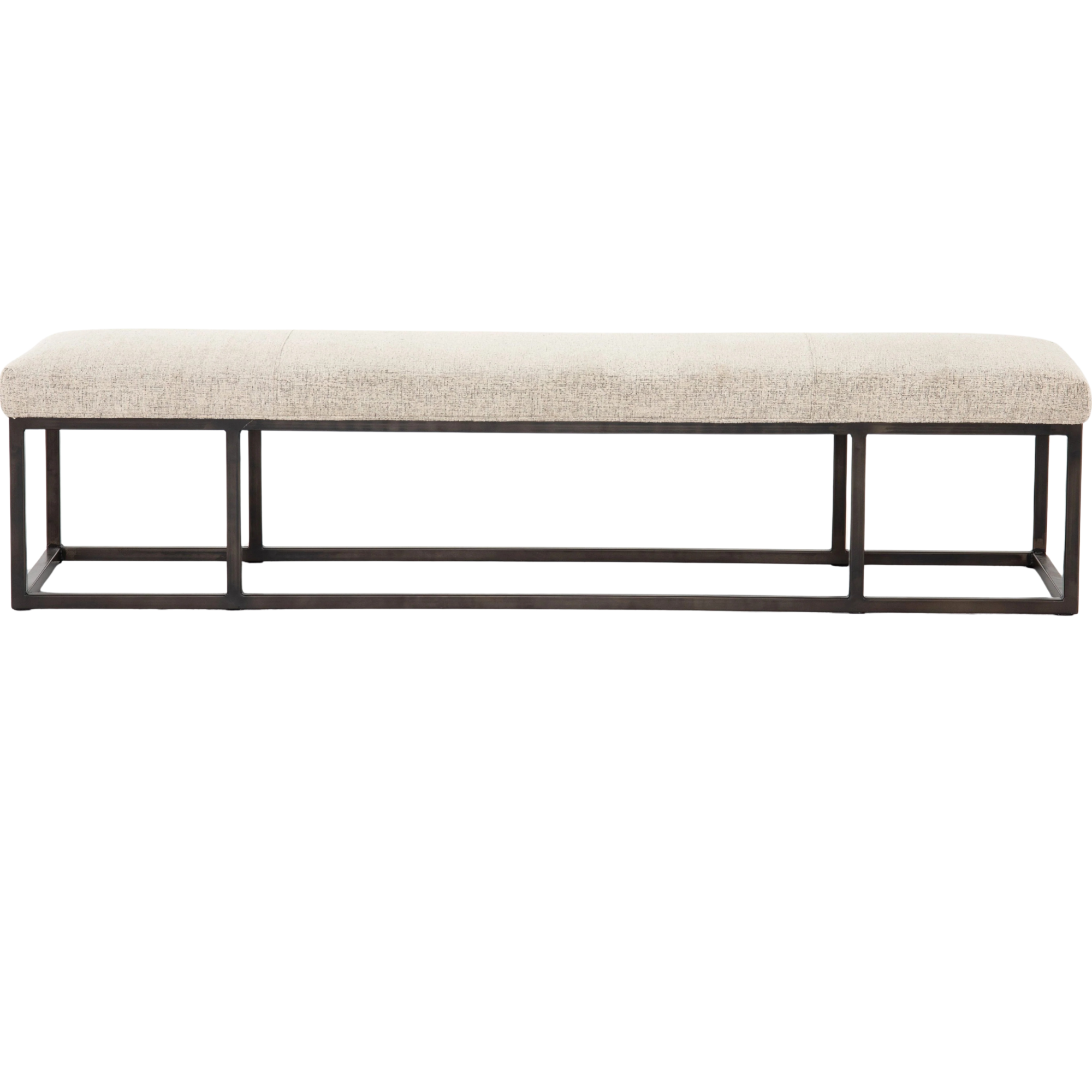 The Beaumont Plushtone Linen Bench has streamlined shaping and is textural to the touch. Gunmetal-finished iron framing stands slim and structured to support a well-tailored top of plush, linen-like upholstery. Open, adaptable styling allows for versatile placement options.