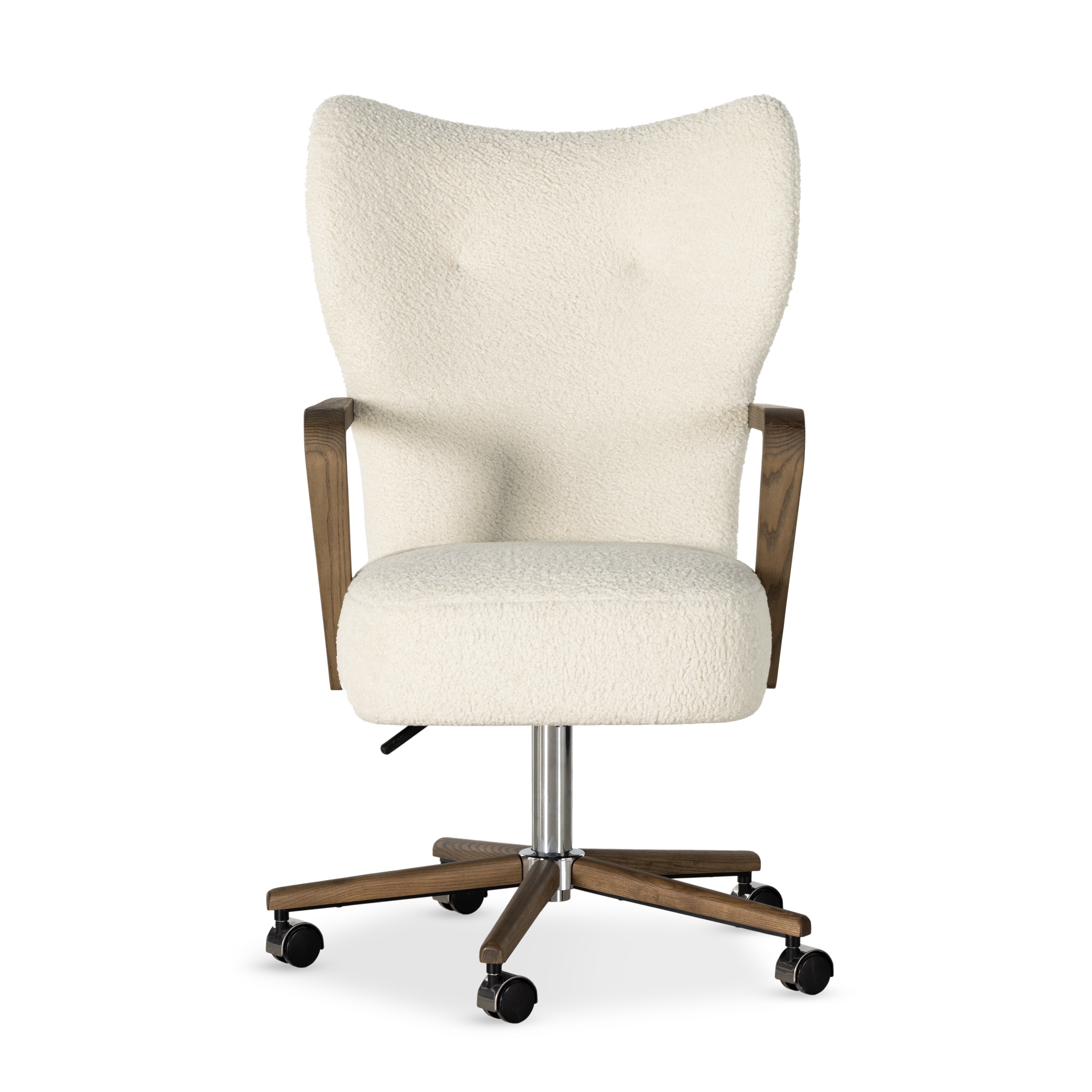 Overall Dimensions: 17"W x 17"L x 26"HColors: Blonde Nettlewood, Beige ShearlingMaterials: Solid Nettlewood, Shearling Weight: 15.21 l.  Amethyst Home provides interior design, new home construction design consulting, vintage area rugs, and lighting in the Boston metro area.