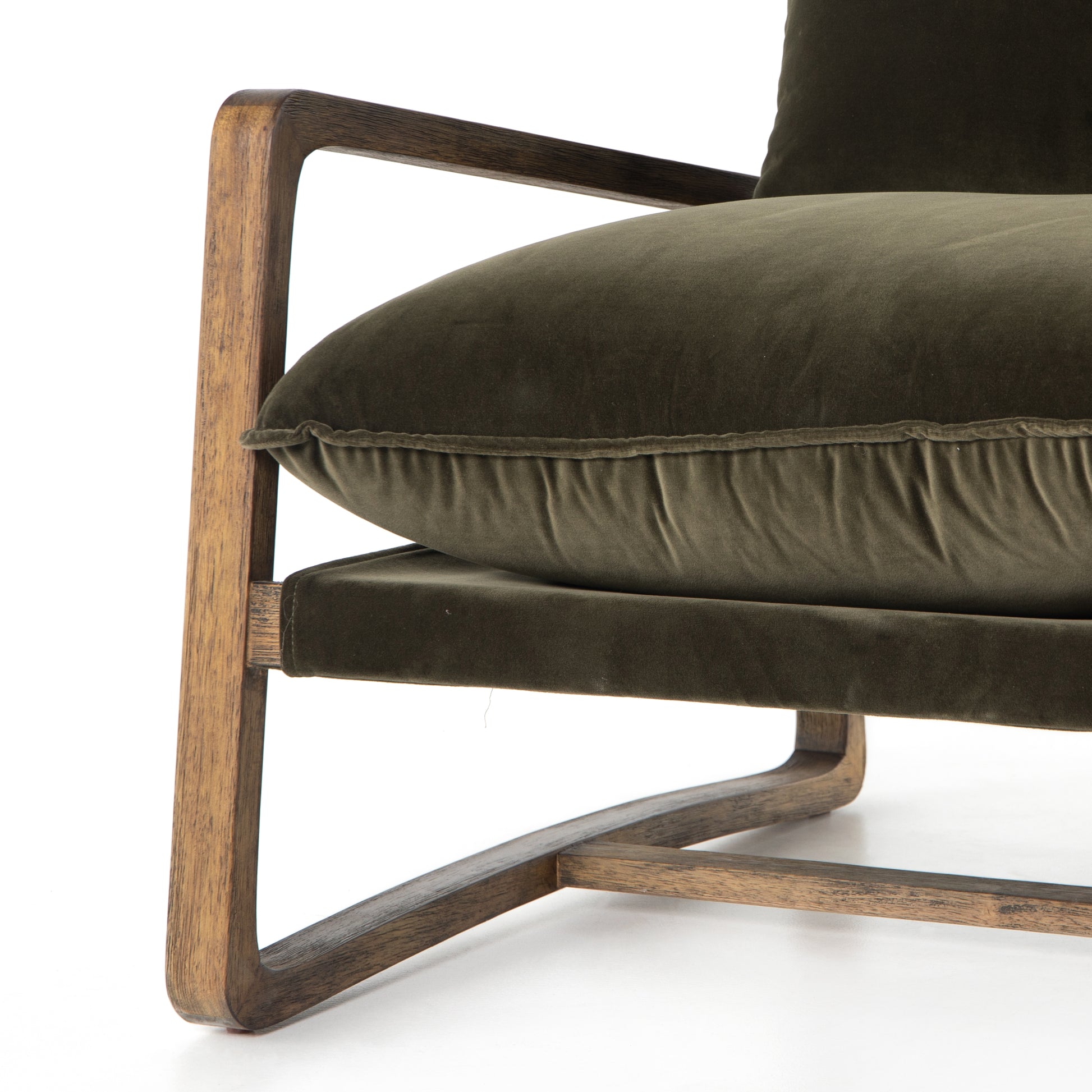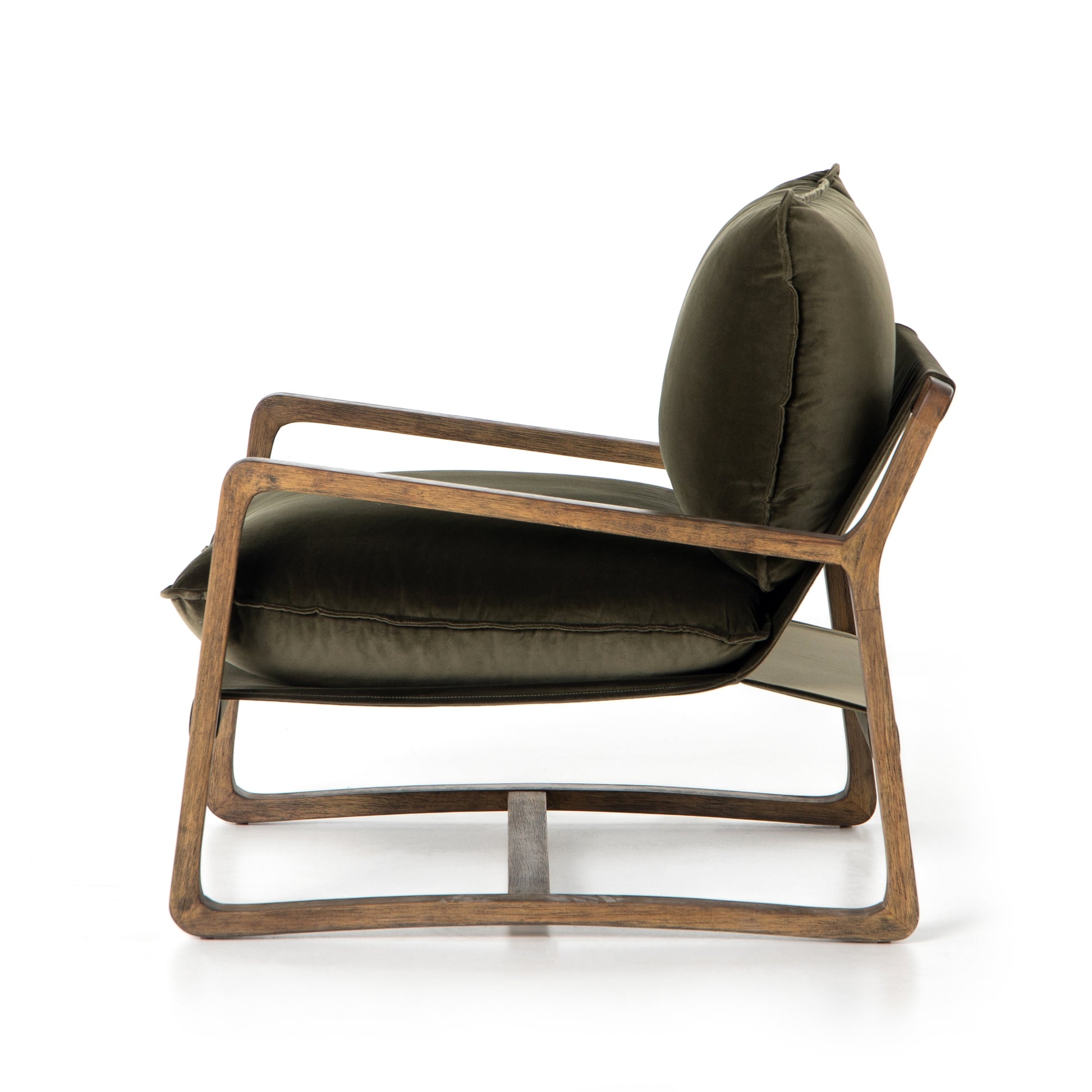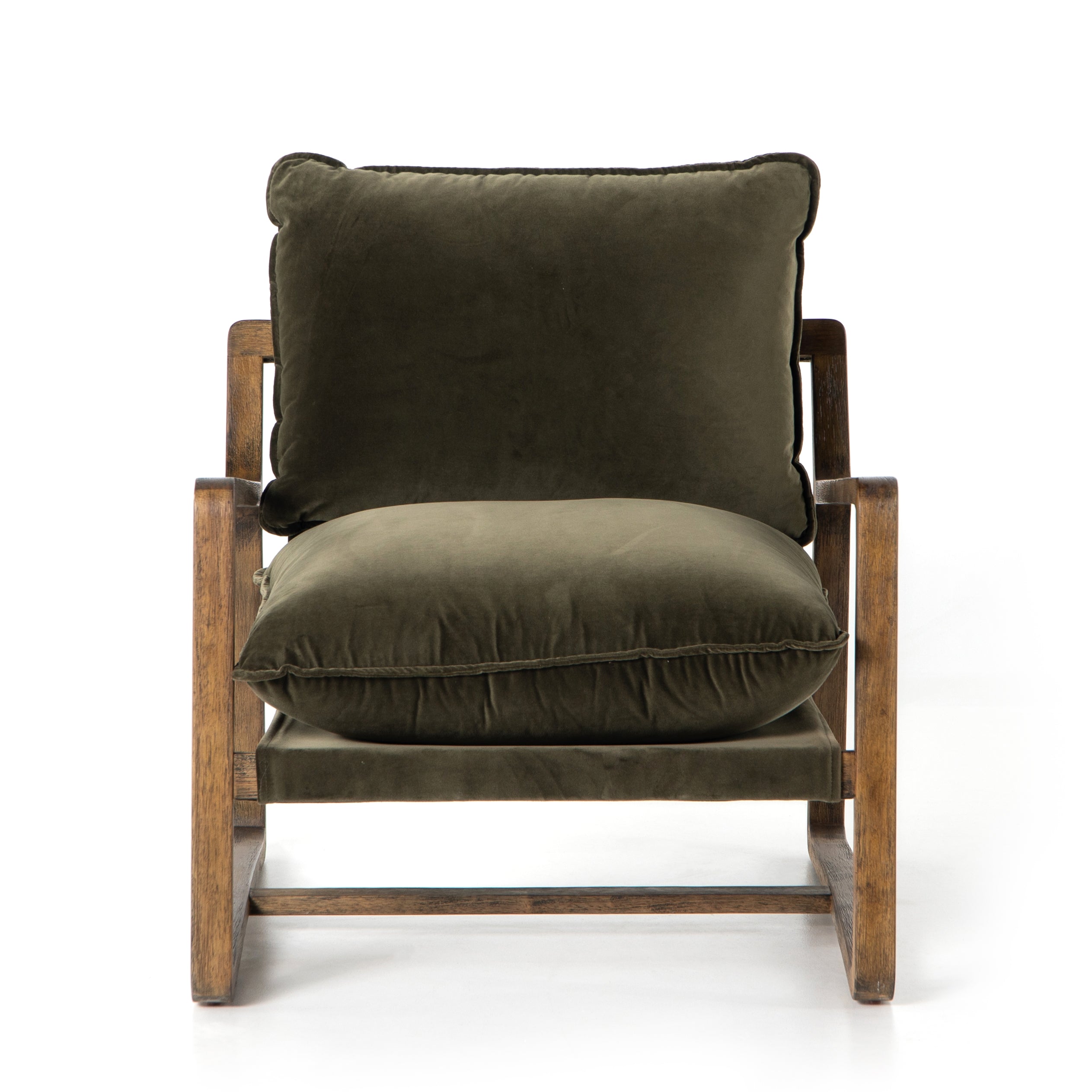 Featuring Ace Olive Green Chair by Four Hands at Amethyst Home. This Ace Chair in Olive Green has a comfortable, cushy seat for the perfect place to curl up with a good book. A hand-shaped oak frame supports deep, low-style seating covered in soft, olive-colored cotton - sure to elevate the look of any living room or office.