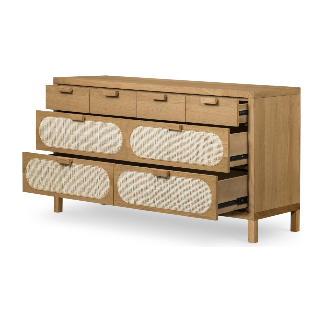 shop Allegra 8 Drawer Dresser - Natural Cane | ready to ship! at Amethyst Home