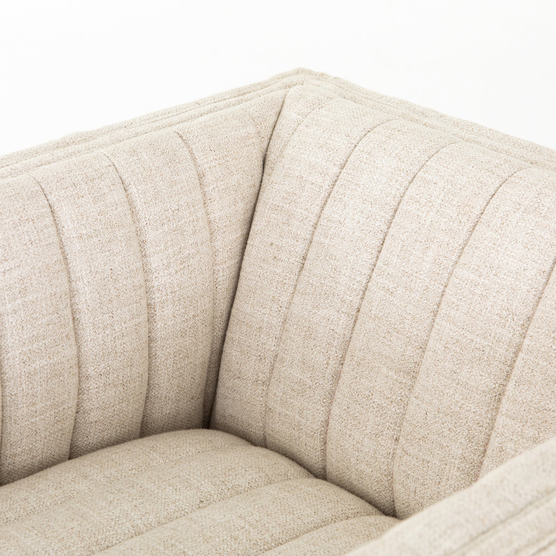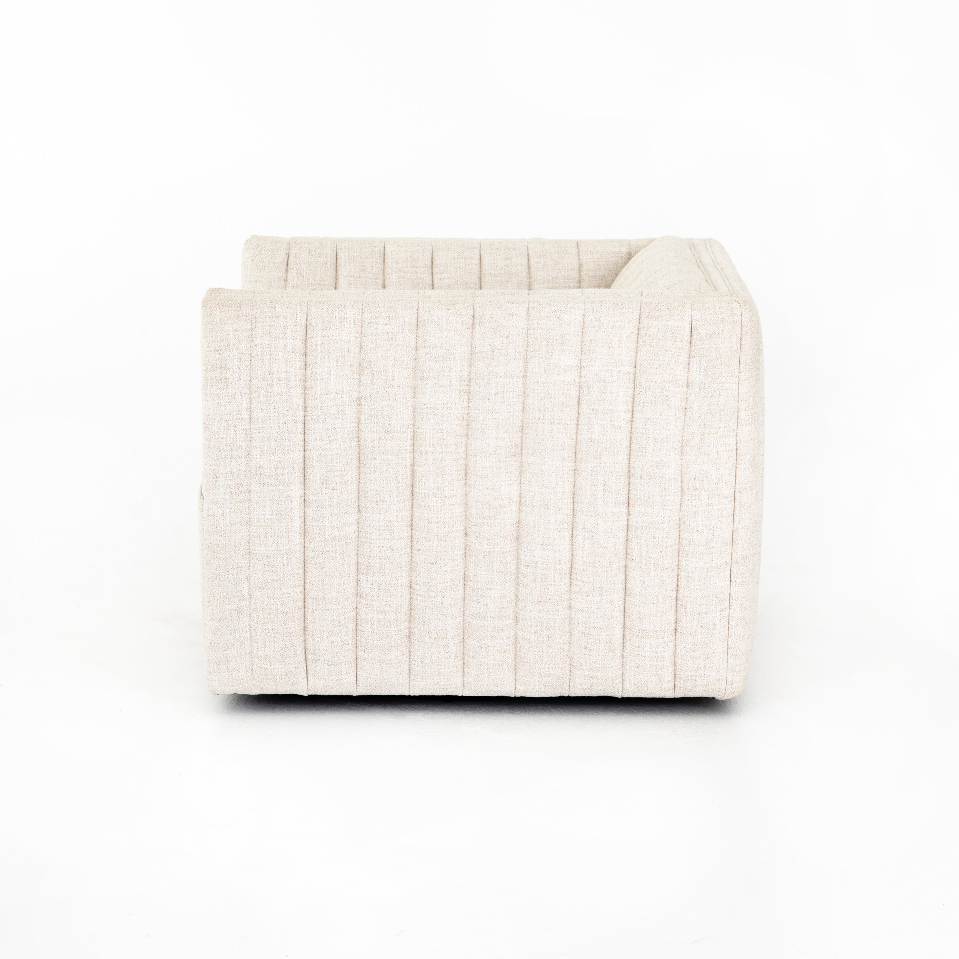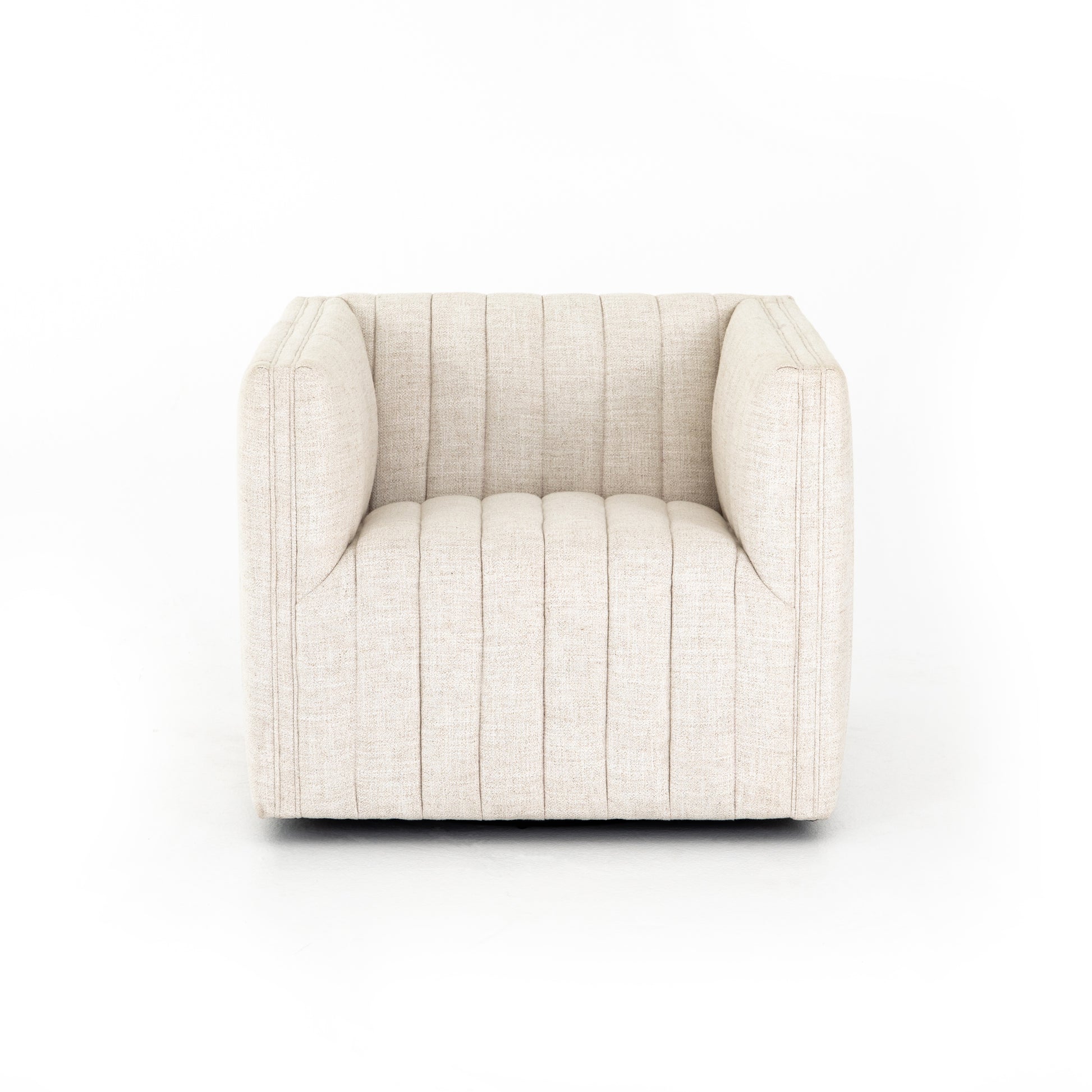 You will love the dramatic channeling of this Augustine Cream Swivel Chair. The swivel feature sets this apart from other chairs and is a great choice for any living room or media room. This chair is comfort wrapped in soft linen blend making this everyone's favorite chair.