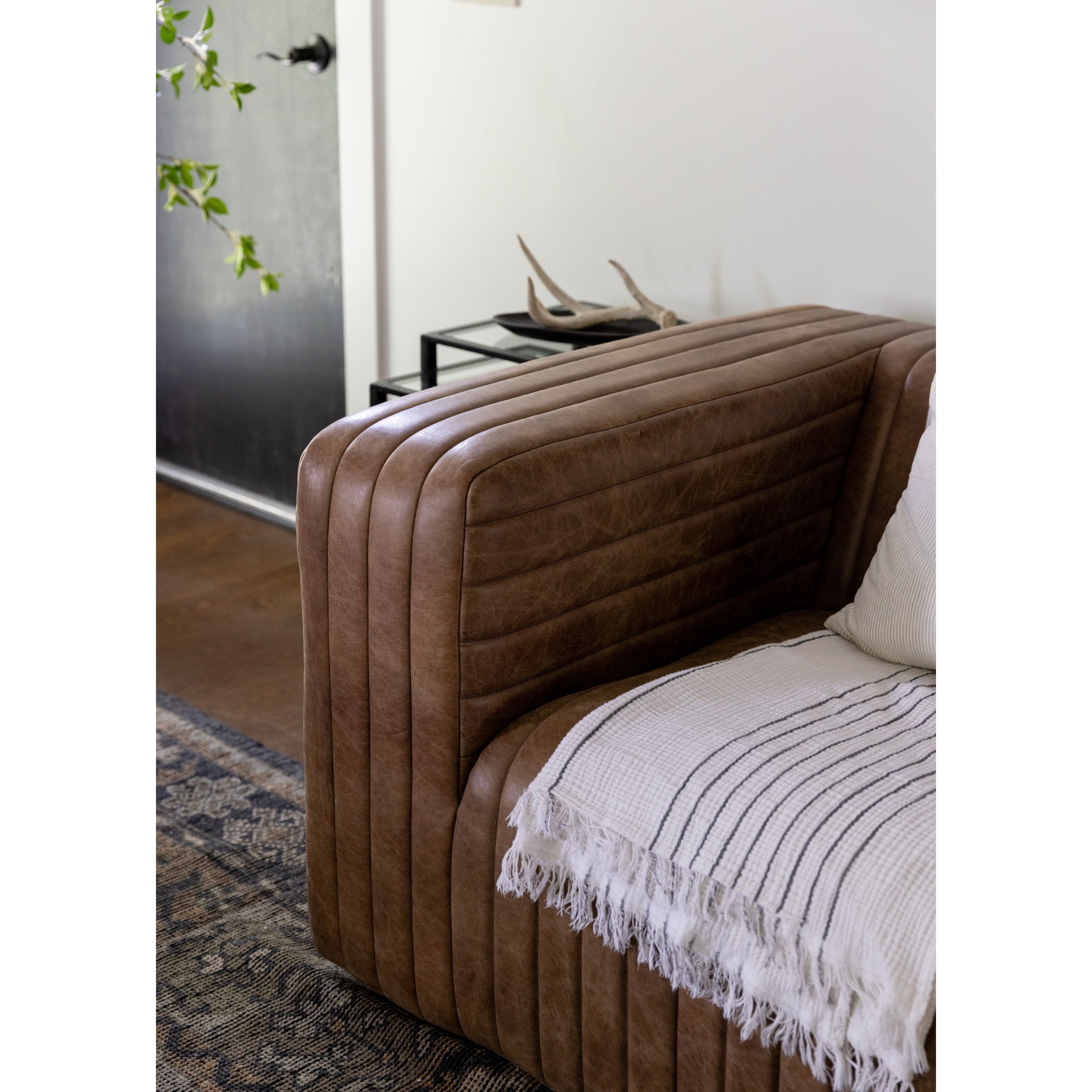 Materials: Upholstery: Top-Grain Leather, Solid Pine & Plywood Frame, Foam, Spring Support