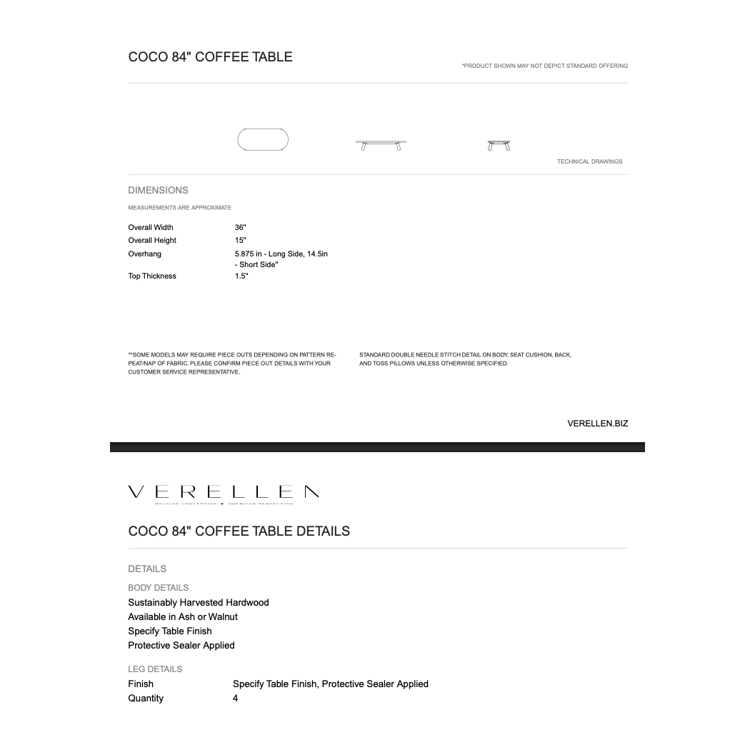 Coco 84" Oval Coffee Table By Verellen