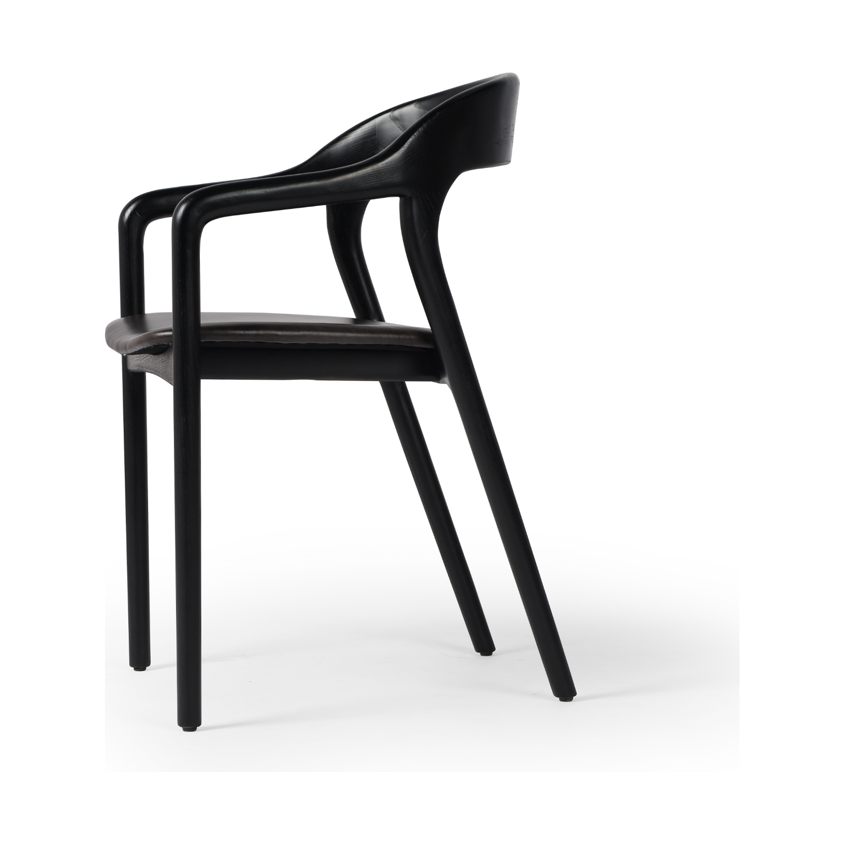 Featuring Amare Sonoma Black Dining Armchair by Four Hands at Amethyst Home. Make it monochromatic. Inspired by simple Scandinavian styling, solid ash forms a shapely open frame for top-grain leather seating.