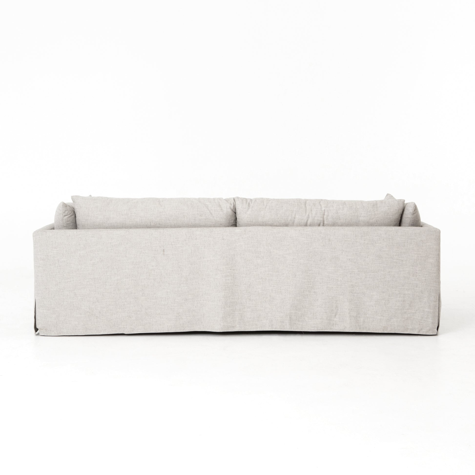 Featuring Habitat Sofa - Valley Nimbus by Four Hands at Amethyst Home. Loungey and slipcovered, the Habitat sofa is made for modern living. Shelter arms and pillow-inspired cushions are covered in comfortable, durable, and stain-resistant performance fabric. The thread within the fabric itself is doused in a material meant to prevent it from becoming stai.  Amethyst Home provides interior design, new home construction design consulting, vintage area rugs, and lighting in the Scottsdale metro area.