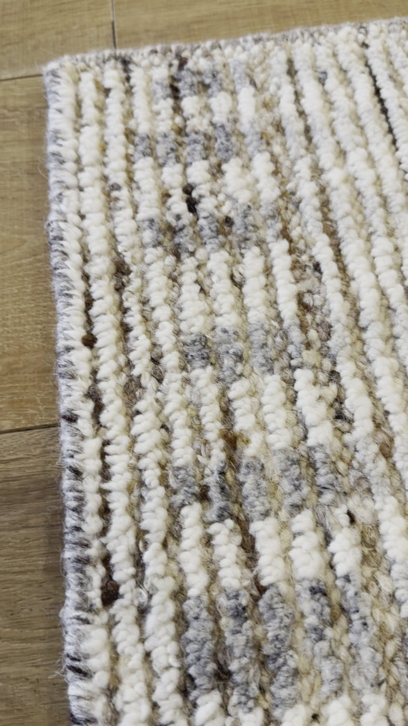 Subtle linear textures and natural colorways define the irresistible quality of this collection. The Heeth area rug features a series of perpendicular, striped lines for an intriguing dose of modern appeal. The textural, wool pile contains no dye, reflecting the natural colors of the sheep, for a rich and grounding palette of tan, cream, and flecks of brown and gray.