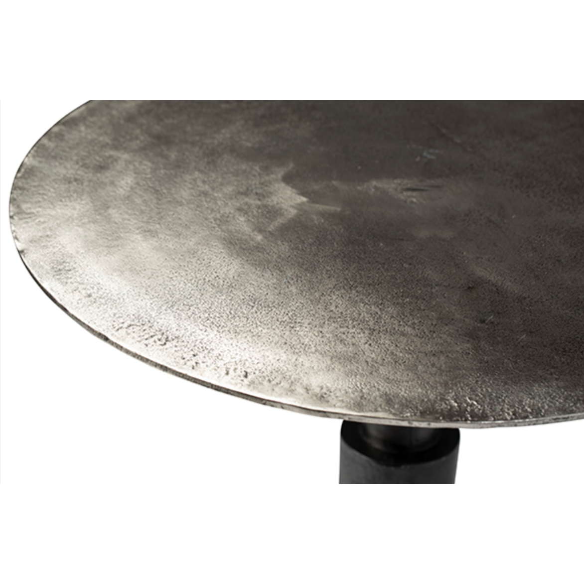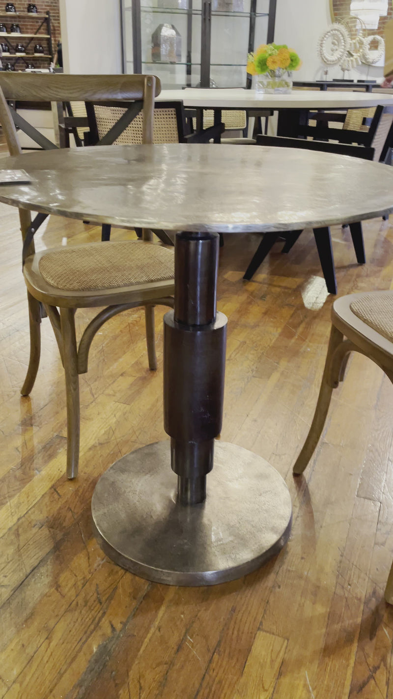 Made from cast aluminum in a raw nickel finish, this Higsby Bistro Table brings a rustic appeal to any dining room or kitchen area.