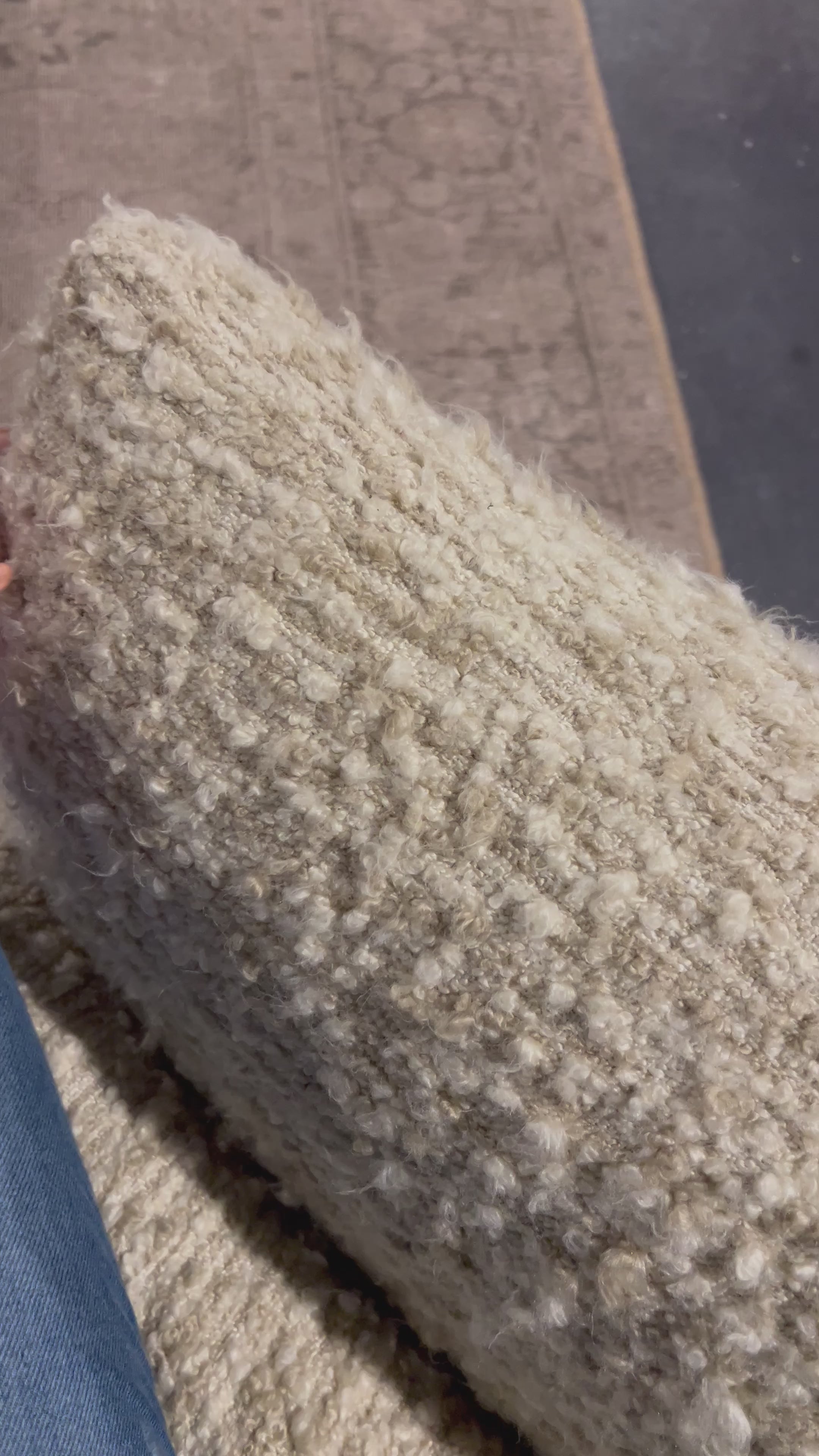 A modern take on a 70s-inspired shape. This sink-in, pillow-like chair features S-spring suspension for extra comfort and durability in the seat, all on a 360-degree swivel. Upholstered in an exaggerated boucle fabric with extra depth and texture throughout.