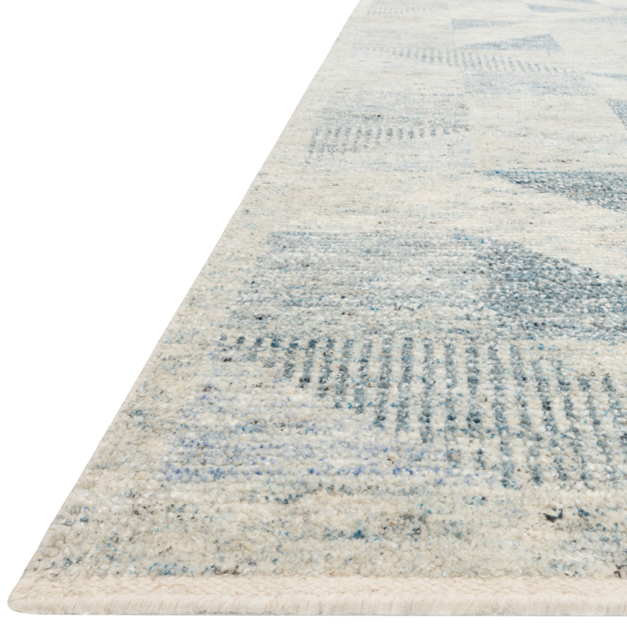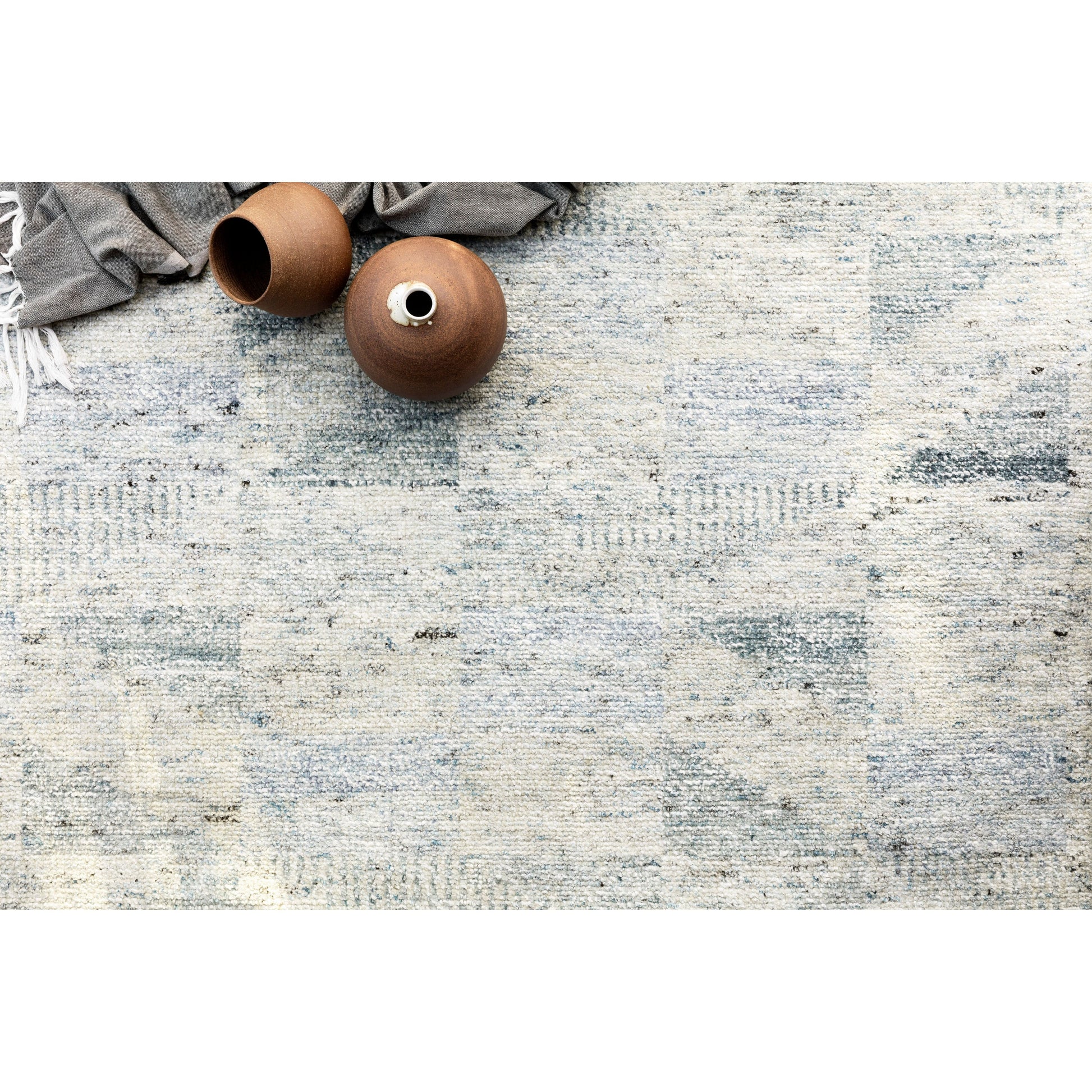 Drawing inspiration from tribal influences, the Tribeca Light Blue Area Rug combines relaxed linear pattern with a sophisticated color palette. Each Tribeca area rug, which is hand knotted of wool, viscose, and cotton, is crafted entirely by hand by master artisans in India.