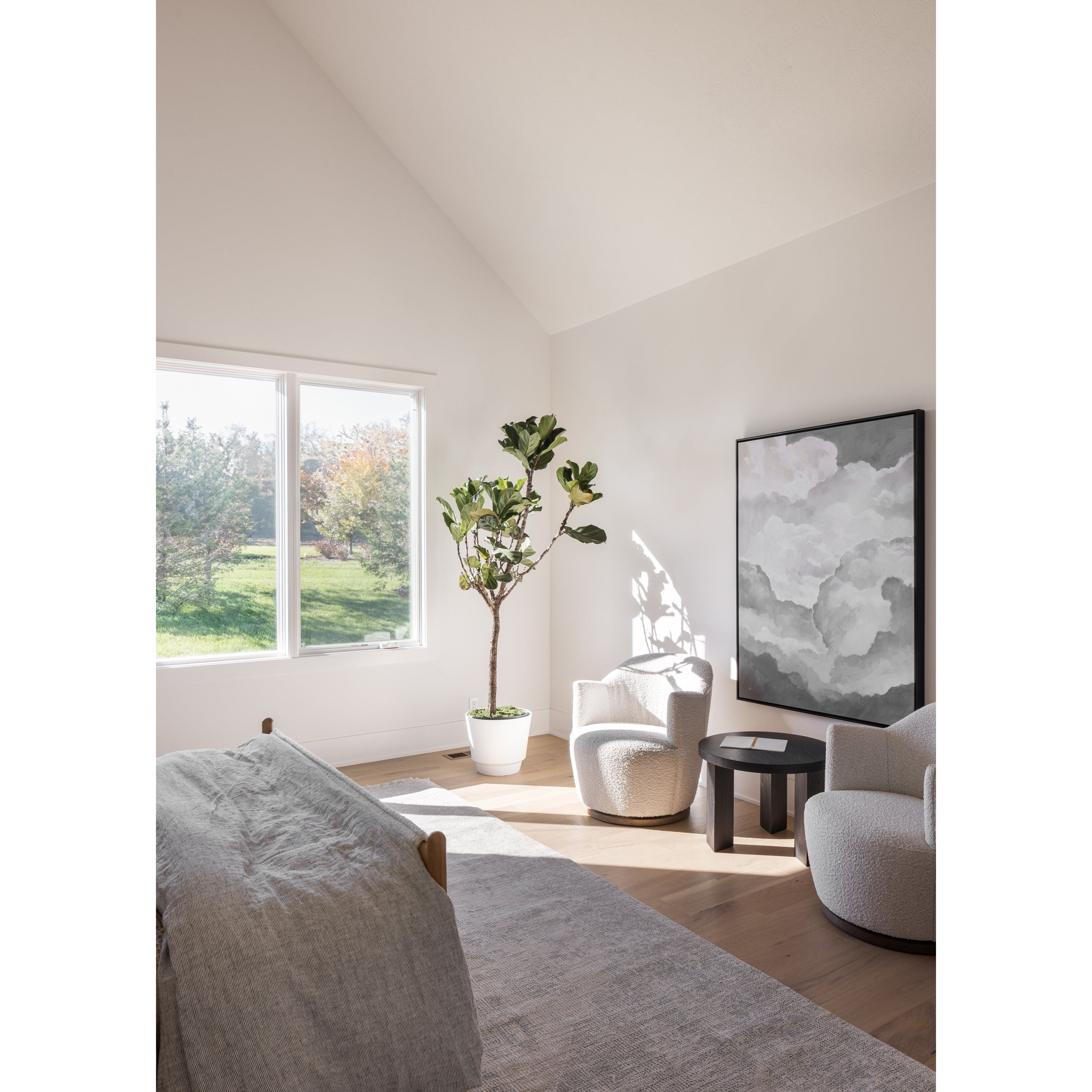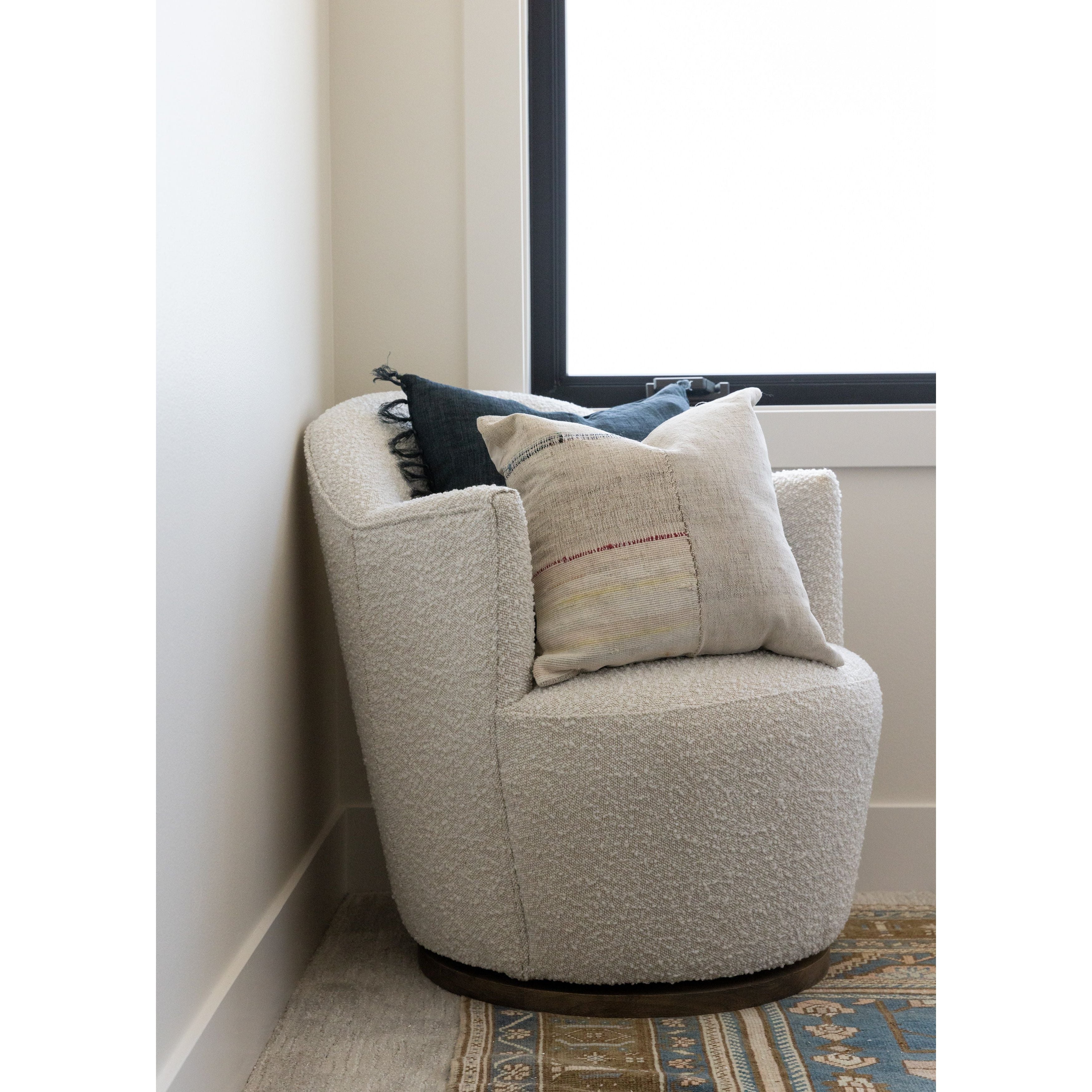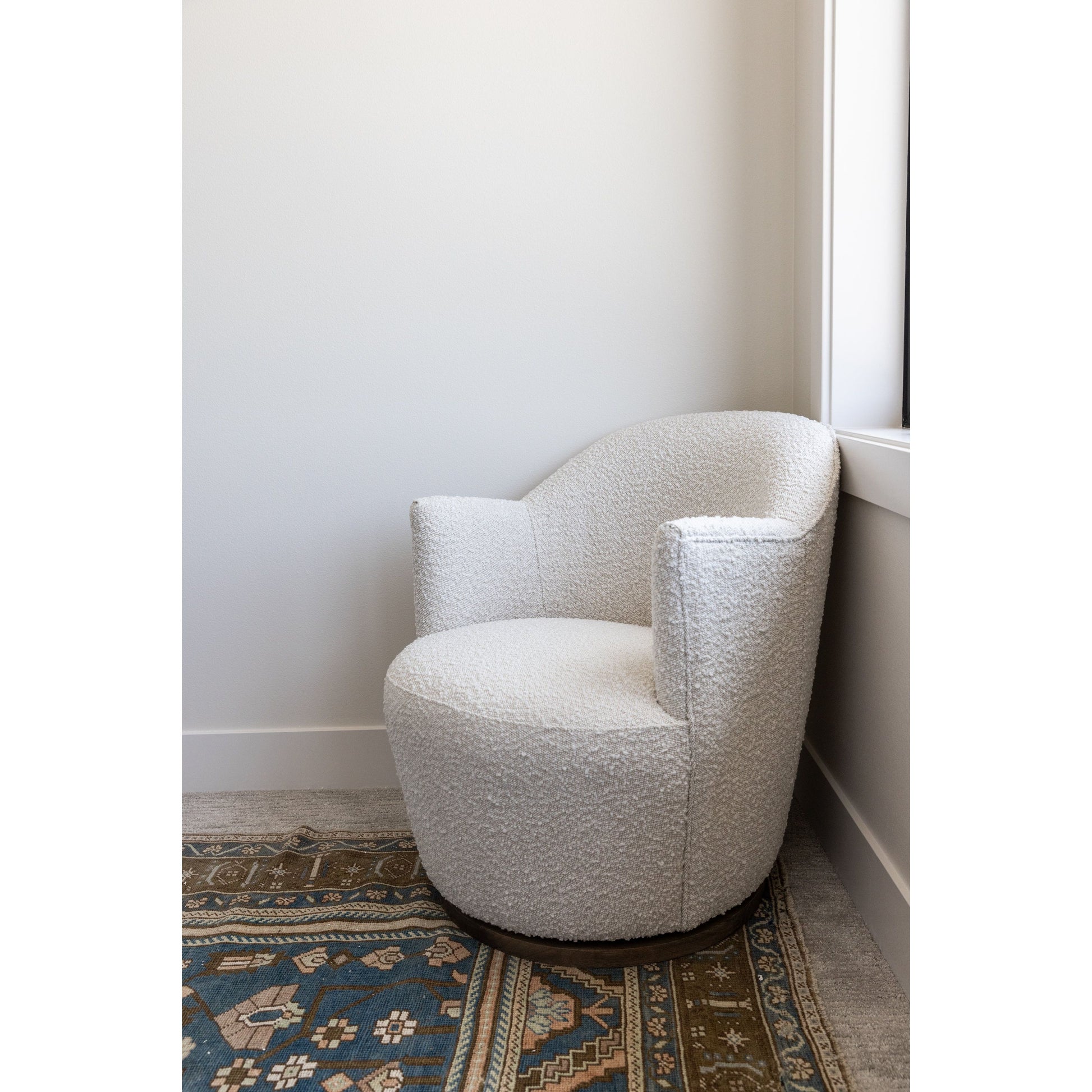 We love the drum-style seating of this Aurora Swivel - Knoll Natural. Upholstered in a soothing and textural off-white bouclé, this also features a swivel base - perfect for your office, living room, or other space!  Overall Dimensions: 26.00"w x 31.50"d x 31.00"h