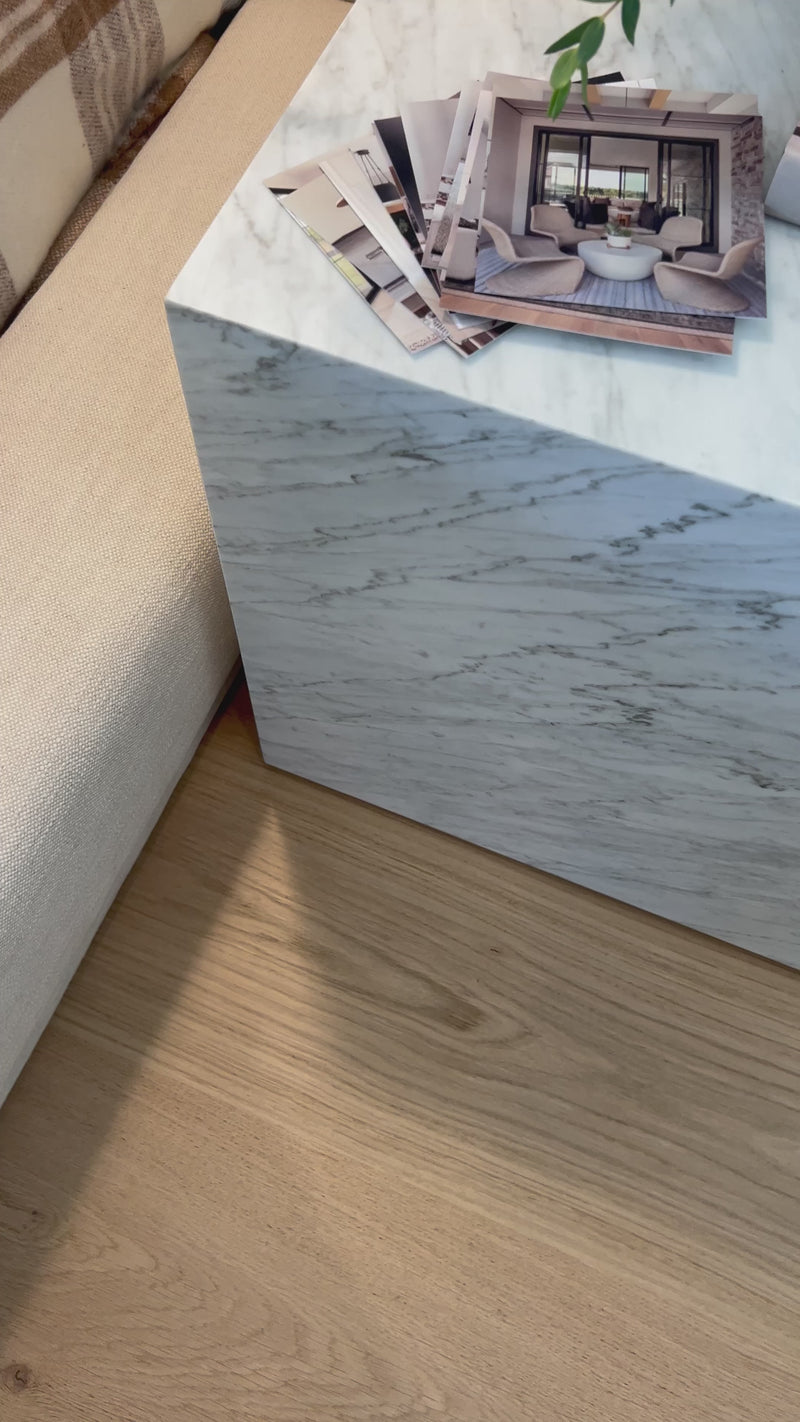 shop Reina Carrara Marble End Table | ready to ship! at Amethyst Home