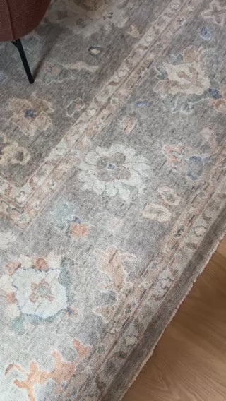 Hand-knotted in India of 100% wool by skilled artisans, the Vivienne Pebble / Pebble Area Rug offers the look of a well-worn antique area rug in a modern-day color palette. Each exquisite piece undergoes a weeks-long antique washing process which fades the pattern and color beautifully. Vincent fits right at home in any elegant room setting.