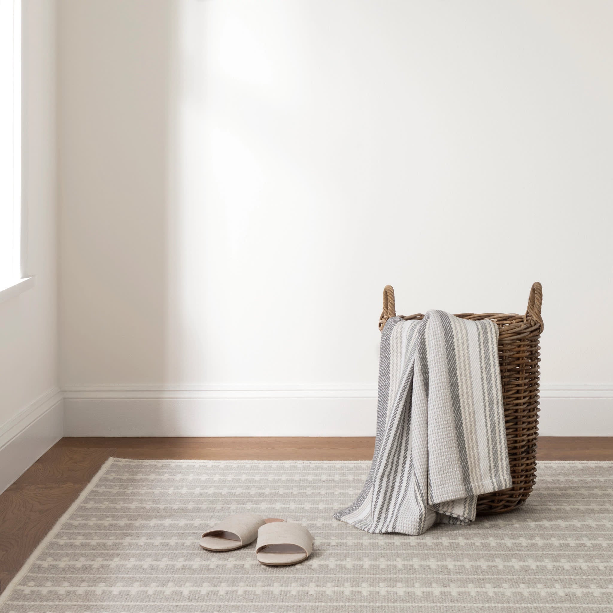 The Tailor Stripe Woven Wool Custom Rug is flatwoven from soft and sustainable wool fibers. Warm, cozy, versatile, and easy to care for, this simple yet elegant rug will enhance any living space.