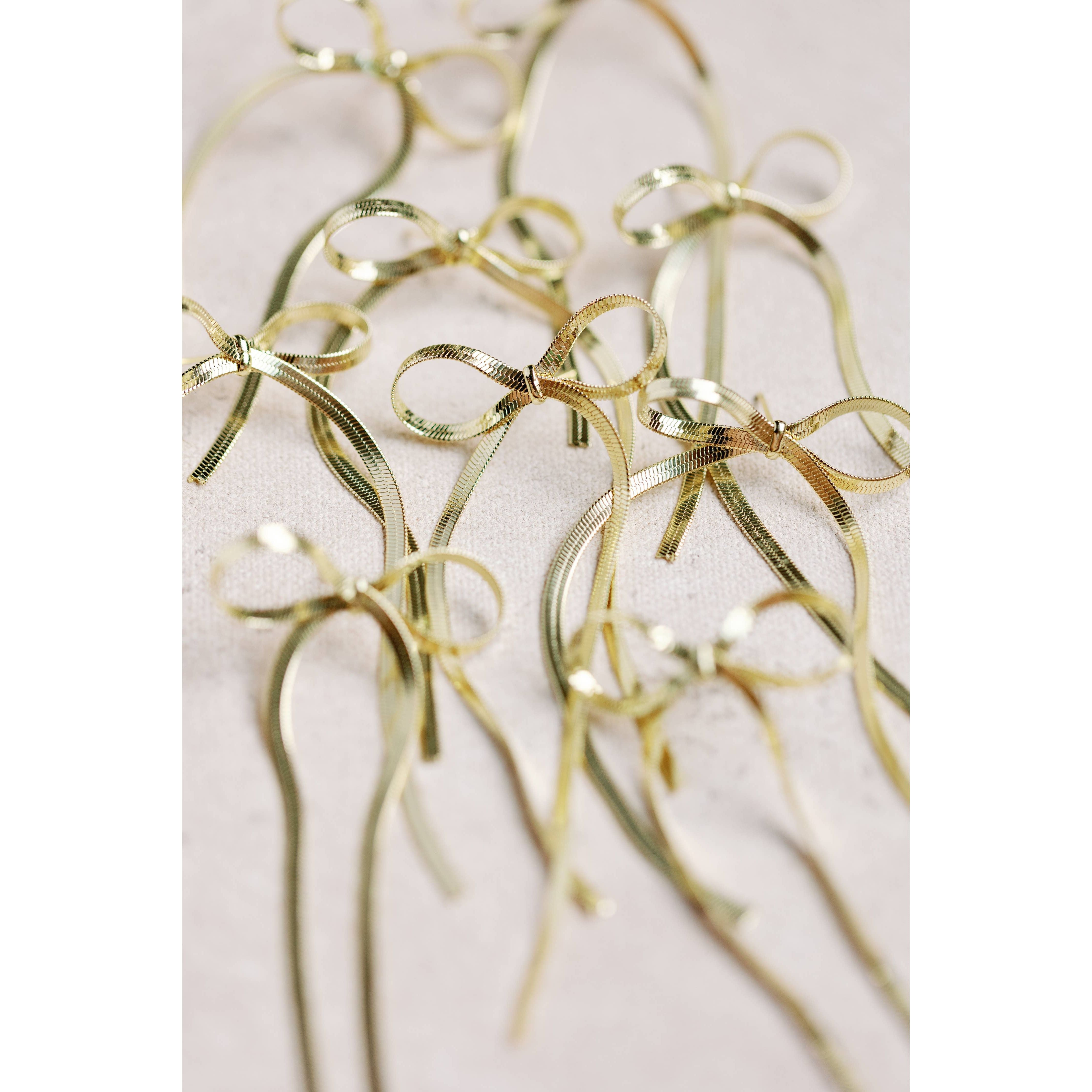 Add a sleek touch of elegance to your holiday ensembles with these stunning minimalist skinny gold bow duster statement earrings, perfect for Christmas and Holiday. These weightless 3.5” earrings feature a delicate gold bow design that gracefully sparkles and sways, making them the perfect festive accessory. These were a top seller for Holiday 2024!