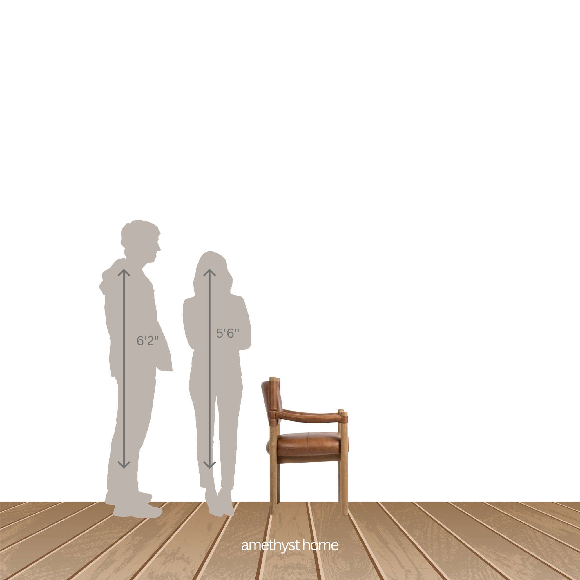 Featuring Adaline Sonoma Chestnut Dining Chair by Four Hands at Amethyst Home. Elevate your dining space with a mixed-material seat inspired by Nordic minimalism. Plush cushions of exclusive top-grain leather craft comfort and volume, all framed out by natural oak. Overall Dimensions: 21.00"w x 23.50"d x 35.00"h. Amethyst Home provides interior design, new home construction design consulting, vintage area rugs, and lighting in the Scottsdale metro area.