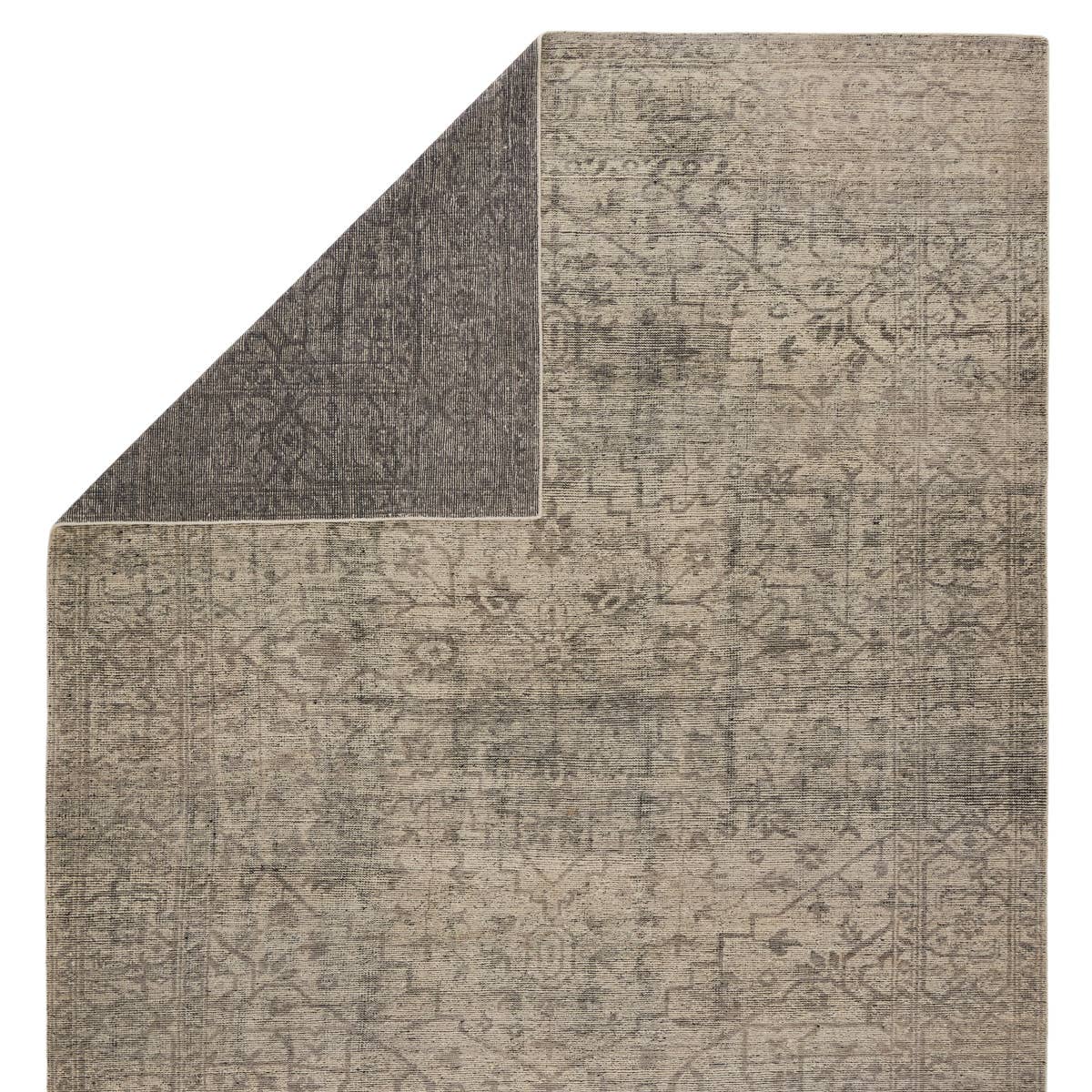 Featuring Rhapsody Camber Hand-Knotted Rug by Jaipur Living at Amethyst Home. The Rhapsody Camber Area Rug features heirloom-quality designs of stunningly abrashed Old World patterns. The durable wool, hand knotted Camber area rug boasts a beautifully washed, winding medallion design. The tonal gray and cream palette is accented by hints of deep black for adde.  Amethyst Home provides interior design, new home construction design consulting, vintage area rugs, and lighting in the Tampa metro area.