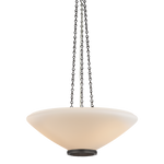 The traditional silhouette of the Awosting pendant receives a fashionable update with jewelry-inspired details. Blown from opal matte glass, the shade’s softened edges evoke a sense of calm, organic beauty. As light passes through the oculus, the lace-like metalwork becomes more noticeable. At the top, a trio of delicate vintage-inspired chains supports the shade. Awosting is available in two sizes and two finishes, Aged Brass and Dark Bronze.