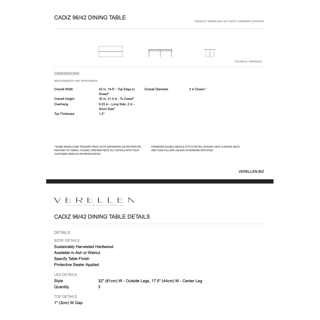 Cadiz 96/42 Rectangle Dining Table By Verellen
