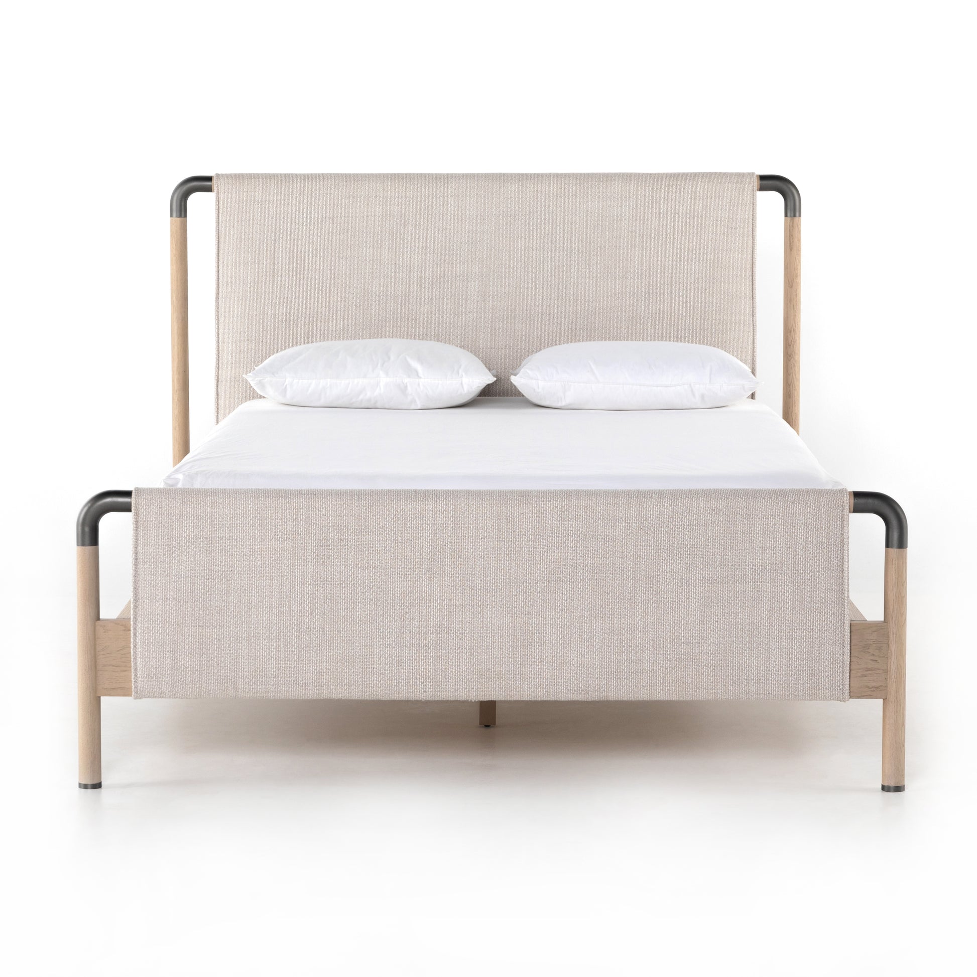 Featuring Harriet Bed by Four Hands at Amethyst Home. We love the mixed materials of this Harriet Bed. Framed by solid oak with rounded iron corners, an upholstered, sling-style headboard brings a light, modern vibe to any bedroom.