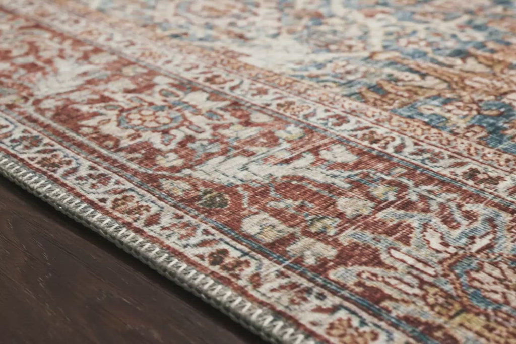 Featuring Layla Ocean/Rust Rug by Loloi at Amethyst Home. The Layla Collection is traditional and timeless, with a beautiful lived-in design that captures the spirit of an old-world rug. This traditional power-loomed rug is crafted of 100% polyester with a classic and sophisticated color palette and subtle patina.
