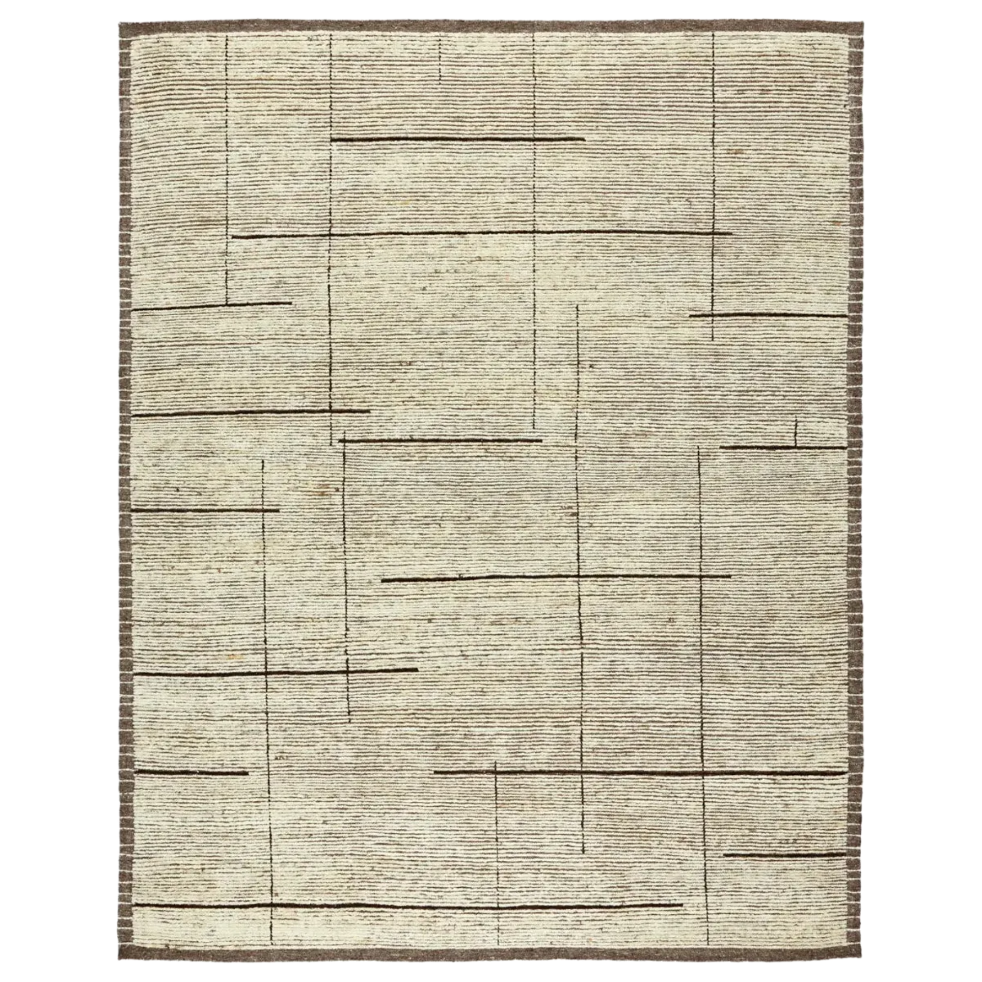 Subtle linear textures and natural colorways define the irresistible quality of the Seora collection. The Dorian area rug features a series of parallel and perpendicular lines for an intriguing dose of modern appeal. The textural, wool pile contains no dye, reflecting the natural colors of the sheep, for a rich and grounding palette of brown, cream, and gray.