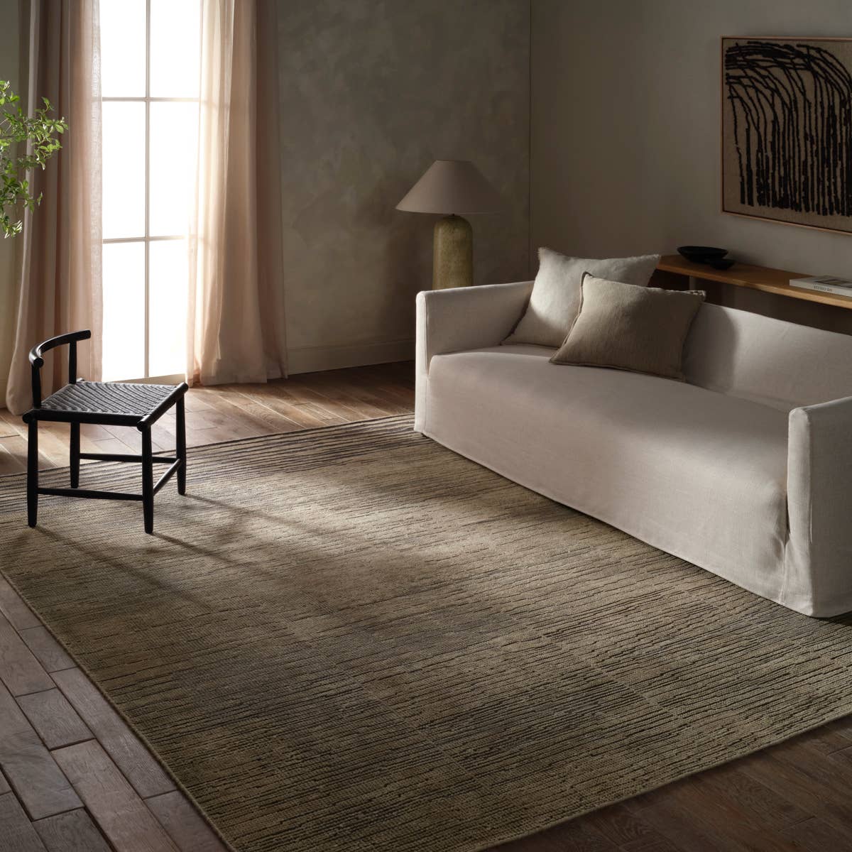 Beauty is on the horizon with the Bezem collection. The Alora design features fluid, horizon-inspired lines, evoking the allure of a shifting landscape. Its easy-care wool and hand-knotted, high-low pile make this piece as practical as it is captivating—a true testament to modern craftsmanship.