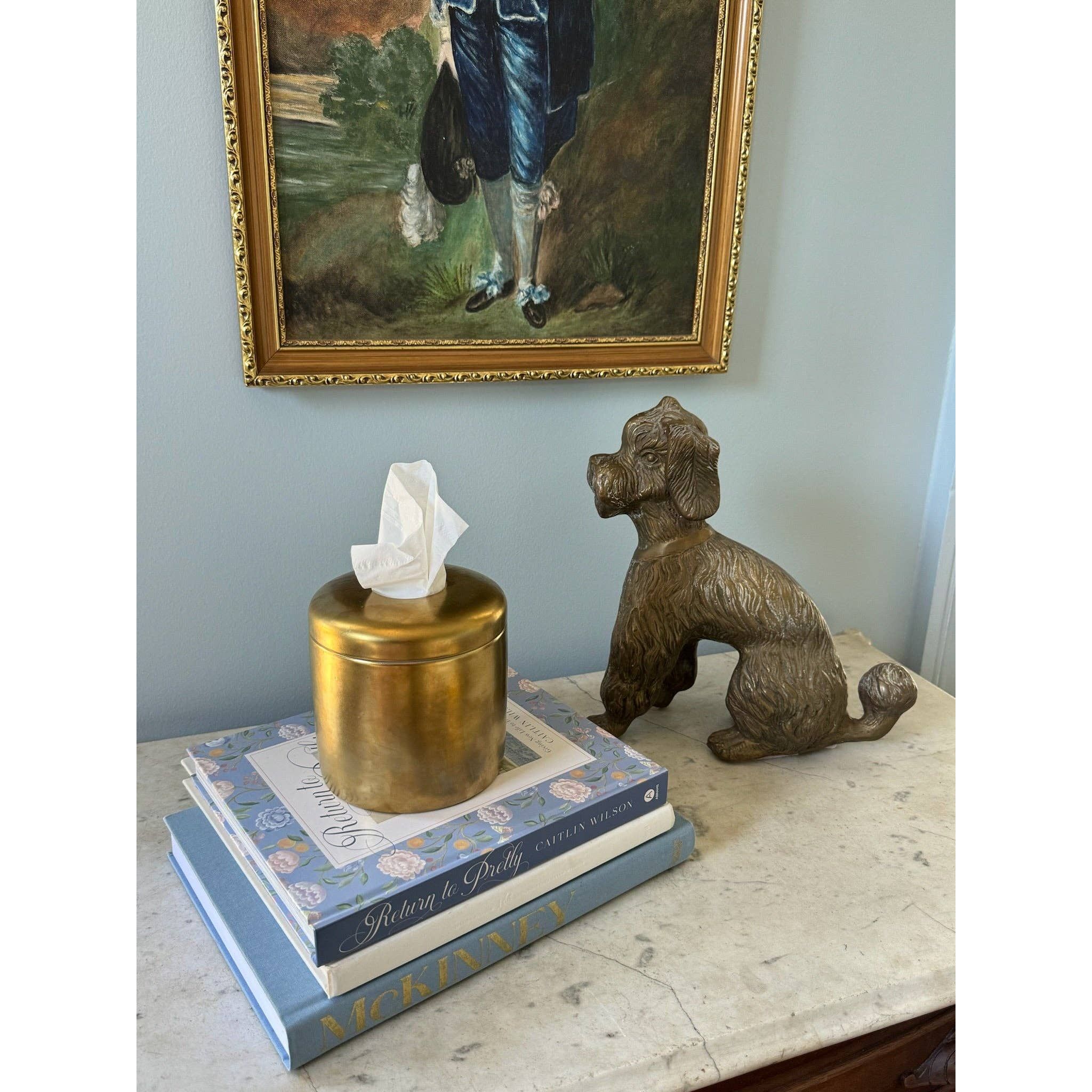 Crafted to conceal standard tissue boxes, Coco blends modern elegance with everyday function. Its clean cylindrical shape and warm metallic tone make it a versatile accent for bedrooms, bathrooms, and living spaces alike.