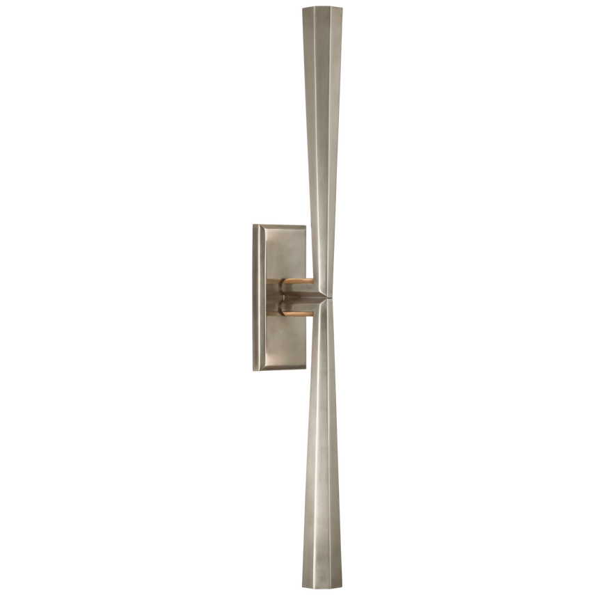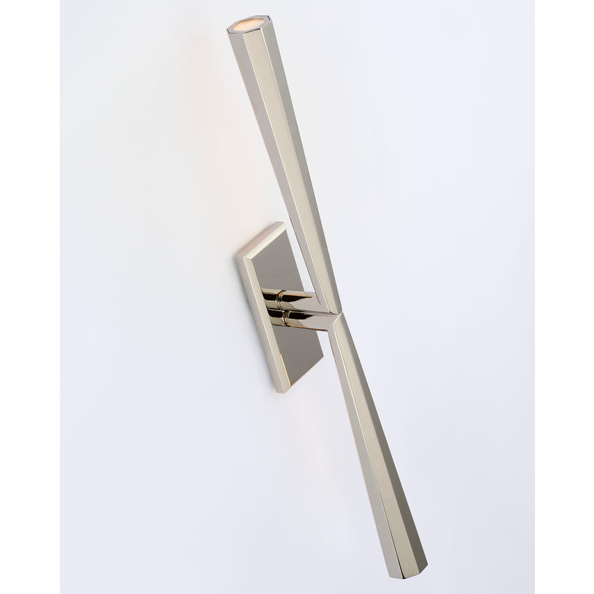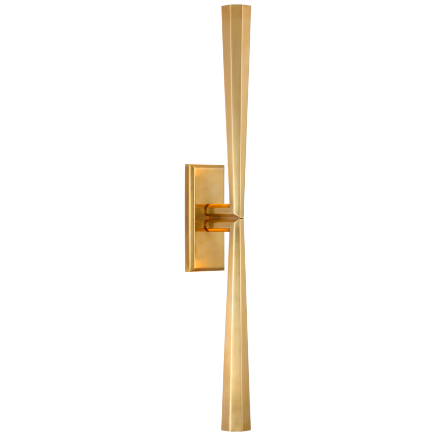 Featuring Galahad Linear Sconce by Visual Comfort at Amethyst Home. Eye-catching sleek metal lines define the Galahad by Thomas O'Brien. The minimalist aesthetic is at once modern and timeless, spanning sconces, chandeliers, and lanterns. Crafted from solid sculpted and welded brass, the refined fixtures will add a soft glow to rooms.Overall Dimension.  Amethyst Home provides interior design, new home construction design consulting, vintage area rugs, and lighting in the Salt Lake City metro area.
