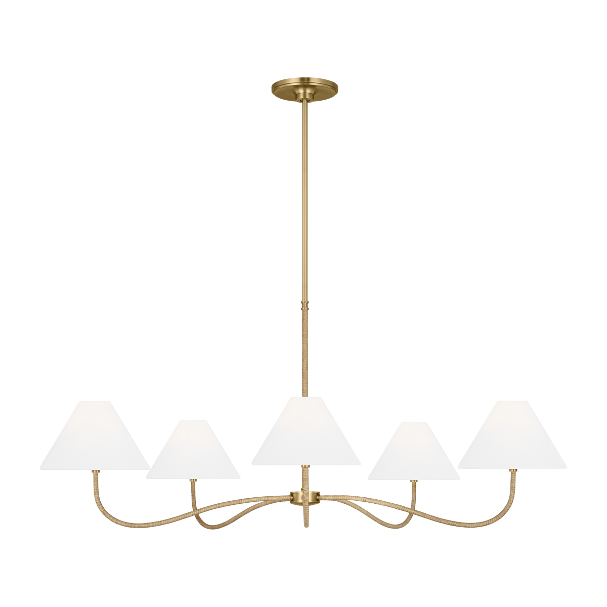 Featuring Laguna Grand Chandelier Burnished Brass by Visual Comfort at Amethyst Home. The sinuous forms of Jean Royere inspire the Laguna series, showcases a tight woven design that transitions to the shade