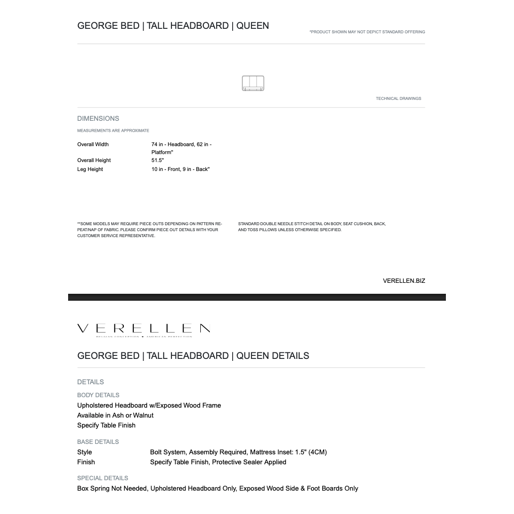 About The George Ash Tall Headboard Queen Bed By Verellen & Dimensions
