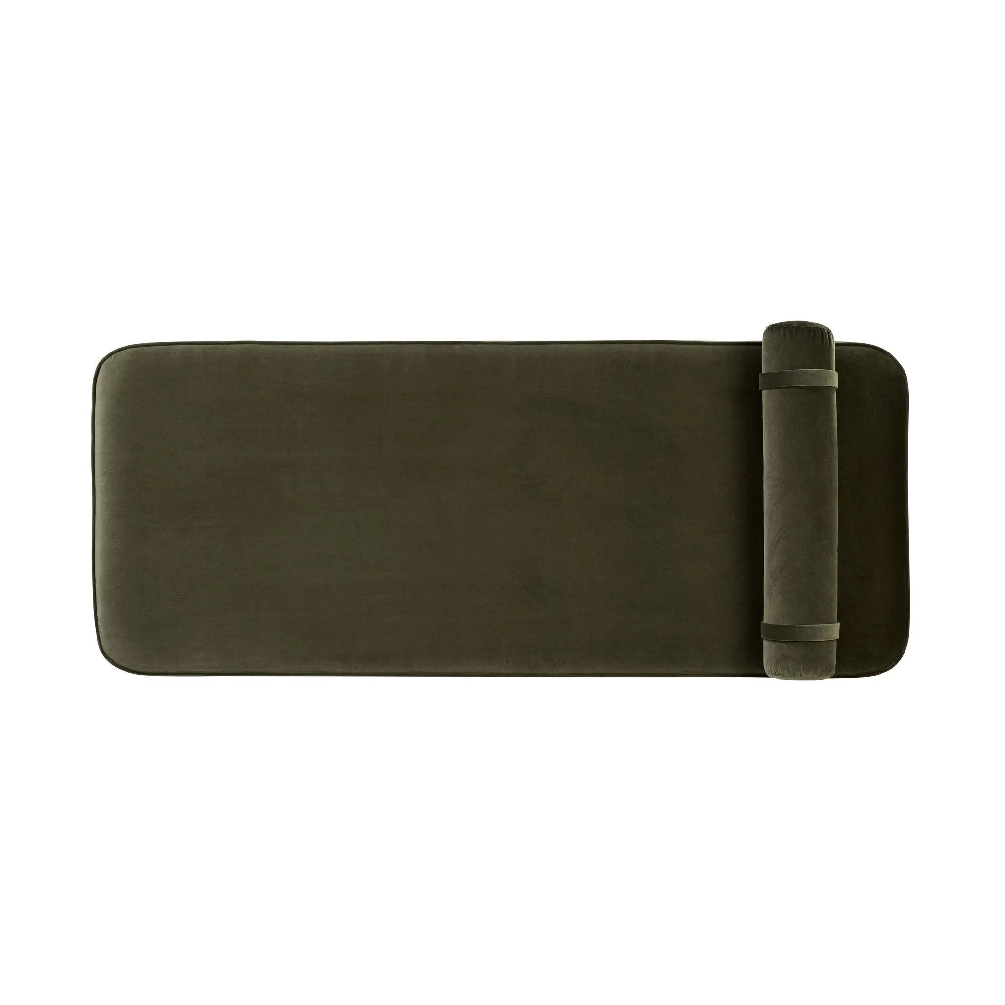 Elevate any room with a timeless chaise. Upholstered in a velvety cotton blend with a bench seat, angled apron and strap-secured bolster headrest. Slim steel legs keep this look light and airy Amethyst Home provides interior design, new home construction design consulting, vintage area rugs, and lighting in the Miami metro area.